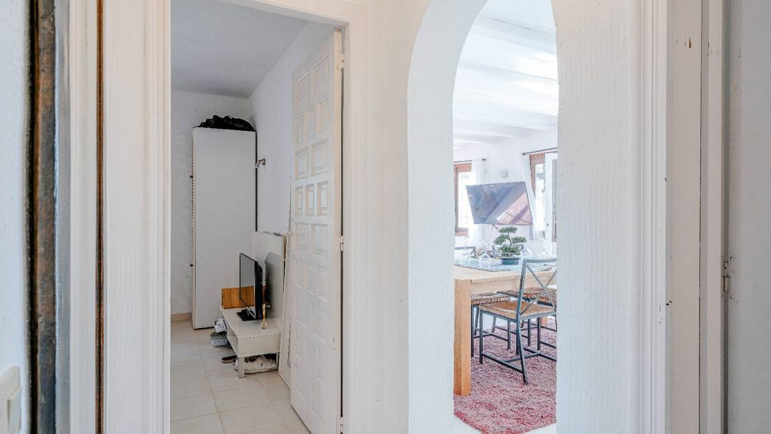 In one of the most exclusive and peaceful areas of Moraira, in La Arnella, lies this cozy Mediterranean-style villa, ideal for those seeking peace, privacy, and proximity to the sea. The property offers an unbeatable location, with close access to Cala Llebeig from the rear of the property and just a three-minute drive from El Portet beach, one of the most beautiful on the Costa Blanca. Built on a spacious 836 m² plot, this single-story villa offers a warm and functional atmosphere. The home features two bedrooms with built-in wardrobes, a renovated bathroom, and a bright living area that connects to the terrace and garden. The practical and well-maintained kitchen completes the interior of this charming home. Outside, you can enjoy a beautiful garden with Mediterranean vegetation and a private pool, perfect for sunny days. The south-facing orientation guarantees natural light throughout the day, creating an ideal setting for both year-round living and unforgettable vacations. Among other extras, the property features air conditioning, individual heating, a storage room, and a parking space. In good condition, this home is also an excellent option as a vacation rental investment, thanks to its privileged location between the sea and the mountains. Don't miss this opportunity to live or invest in one of the most coveted spots in the Marina Alta.