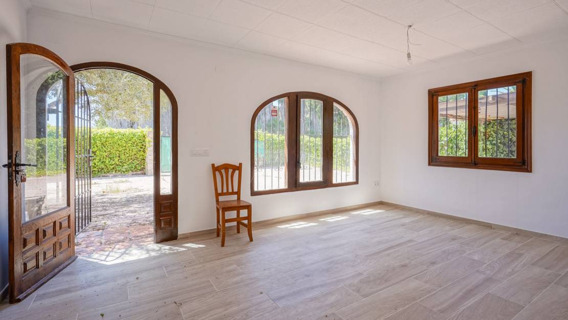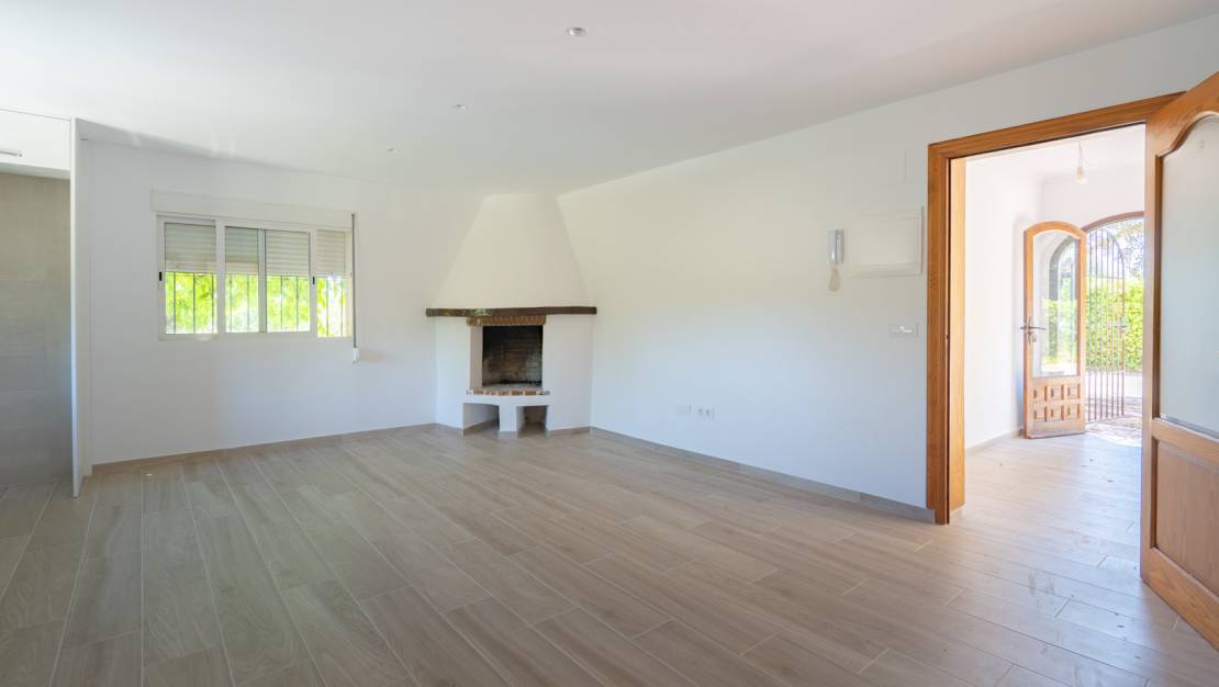 Detached villa for sale just 1.5 km from the beach This single-storey villa is located on a flat plot of 1,550 m2, in the middle of an agricultural area with orange groves, and within walking distance of the sandy beach of Jávea. The property has a southern orientation and was renovated in 2024. During the renovation, a new floor was installed and both the electricity and water supply were completely renewed. The villa has a spacious living and dining room with open kitchen and fireplace, four bedrooms, a modern bathroom, a lounge and a practical storage room. Outside you will find parking for several cars, a garden with a well and various fruit trees. This property is located in a particularly quiet and green area, where privacy is guaranteed without compromising on comfort or accessibility. All the necessary amenities, such as supermarkets, restaurants, pharmacies, shops and, of course, the beautiful sandy beach of Jávea, are just a stone's throw away. What's more, you can reach the charming historic centre of Jávea in five minutes by bike, via a route through the orange groves. The lively harbour, with its atmospheric terraces and authentic fishing boats, is also only a ten-minute bike ride away. A unique combination of tranquillity, nature and a central location makes this location truly ideal. Don't miss this unique opportunity!