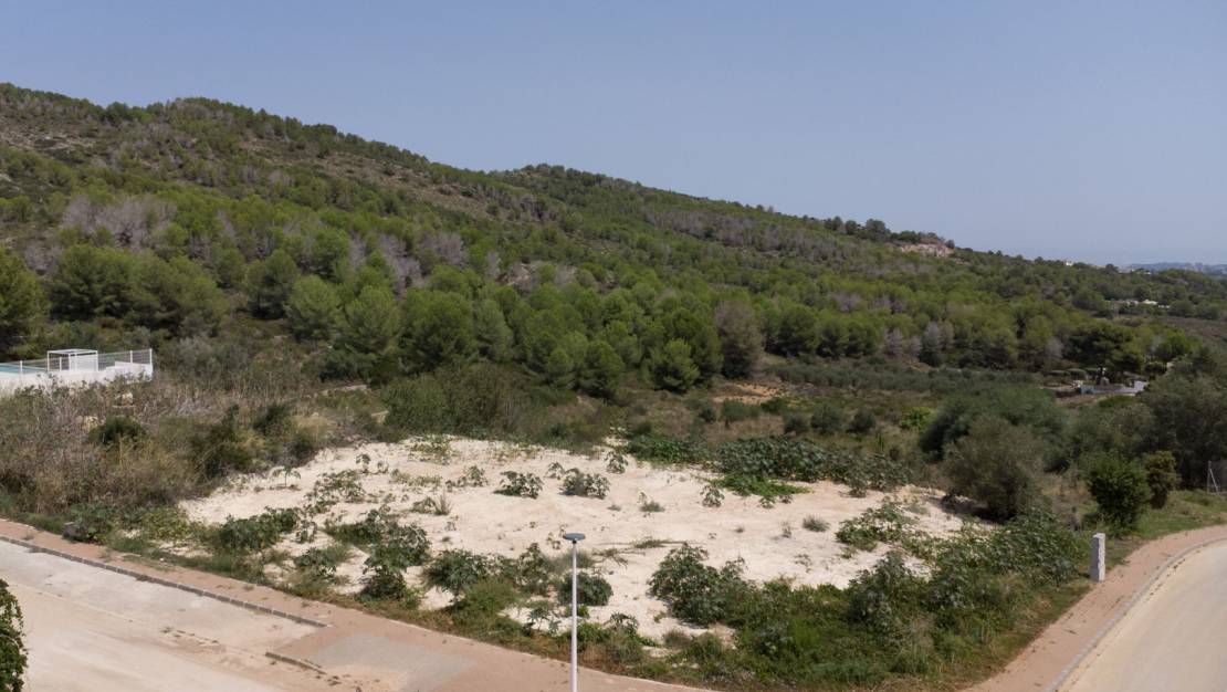 This south-facing plot of 1060 m2 is located in a small, fully urbanised residential area with street lighting, wide footpaths and modern new-build villas. The plot is designated for semi-detached residential development. This means that you can build two single-family homes with one shared dividing wall. The two homes do not have to have the same built-up area; you can build a large villa with a small studio next to it for guests, family, etc. The area is characterised by the beautiful rural landscape of Benitachell and the adjacent nature reserve, giving the plot a wide and green view. The quiet location invites you to take relaxing walks through the countryside and in the nature reserve, while the proximity to the centre of Benitachell and Teulada ensures good connections to all amenities. The seaside resorts of Jávea and Moraira are less than a 15-minute drive away, making the plot an ideal location for those who want to combine peace and nature with good accessibility. The plot is also equipped with water and electricity connections.