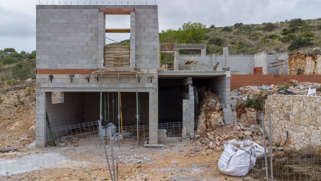 Modern new-build villa under construction for sale in Racó de Nadal, Benitachell This modern villa is located in the quiet and modern residential area of Racó de Nadal, just 2 km from the centre of Benitachell and approximately 6 km from the bustling coastal towns of Jávea and Moraira. The villa is south-facing and spread over one floor, with an additional semi-basement floor containing a spacious garage with space for two cars. For added convenience, there is also parking space at the residential area. Inside, the property offers a bright and open living space with a sitting and dining area and an open kitchen with a cooking island. There is also a master bedroom with en-suite bathroom and two double bedrooms that share a second bathroom. For optimal living comfort, the villa is equipped with underfloor heating and ducted air conditioning, as well as built-in wardrobes, electric shutters and solar panels for hot water production. Outside you will find a covered terrace with barbecue, a 3.5 x 9 metre swimming pool with sun terrace and an outdoor bathroom. The property is surrounded by a low-maintenance Mediterranean garden. The Racó de Nadal urbanisation is known for its modern infrastructure, underground utilities and beautiful views of the mountains and surrounding greenery. The area is quiet and residential, with both detached villas and semi-detached houses. All the amenities of Benitachell, Jávea and Moraira are within a few minutes' reach.