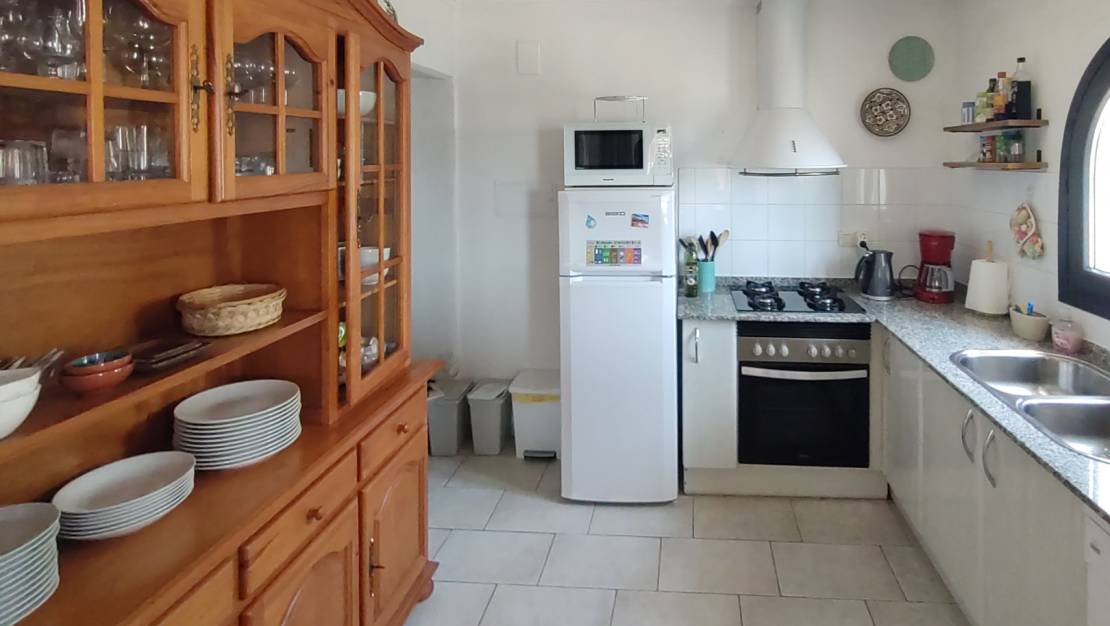 In a tranquil corner of the Northern Costa Blanca, between Benissa and Moraira, stands this charming villa with capacity for 8 people. Situated on a cul-de-sac with very little traffic, it offers the perfect serenity for those seeking rest and privacy. From its sunny terrace, the blue of the sea blends with the green of the valley, creating a landscape that invites you to dream under the shade of the palm trees. The picturesque Cala Baladrar is just 1.5 km away, and nearby you can discover the beautiful beaches and coves of La Fustera, Cala Advocat, and Moraira. Alicante airport is an hour's drive away, and Valencia airport is an hour and fifteen minutes away, making it an ideal meeting point for both holidays and extended getaways. The villa sits on a 1,010 m² plot and has 224 m² of built area, distributed over two independent floors. On the upper floor (at pool level) is the main living area: a bright living room with a wood-burning stove, a cozy dining room, a fully furnished kitchen, and two bedrooms with hot and cold air conditioning and shutters, as well as a full bathroom. The wood-burning stove transforms winter stays into moments of true comfort, something much appreciated by off-season visitors. On the lower floor, a spacious entrance hall leads to two additional bedrooms and a bathroom. The washing machine, dryer, and an auxiliary refrigerator are also located here, ensuring complete convenience. One of the bedrooms has air conditioning, and both the bedrooms and bathrooms have mosquito nets. The house is equipped with a heat pump and solar water heater, and the swimming pool (recently renovated and illuminated) becomes the heart of the garden. A relaxation area with comfortable sun loungers, an outdoor shower, and a covered terrace with a table and chairs for enjoying al fresco meals. In addition, there is a picnic area with benches, a barbecue, and a private storage room in a garden shed. The low-maintenance garden combines succulents with an orange tree that yields delicious fruit every year. Access is easy, without any large external staircases, and there is parking available within the property. With a valid rental license, this villa not only offers a charming Mediterranean retreat but also an excellent investment opportunity thanks to its solid profitability in holiday rentals. A sunny gem where the sea, tranquility, and comfort are in perfect harmony.