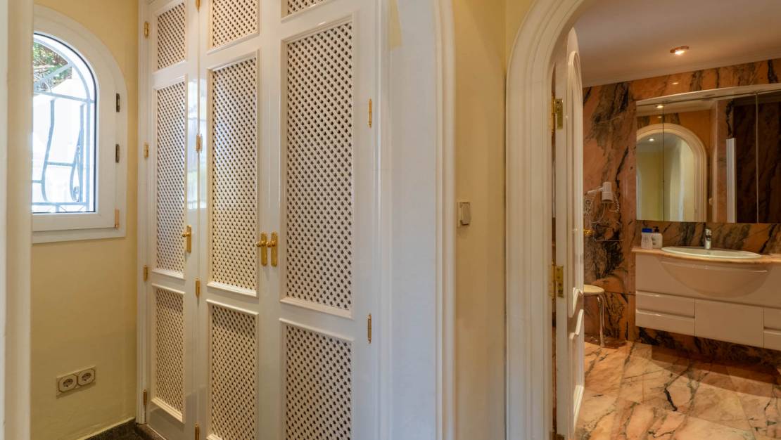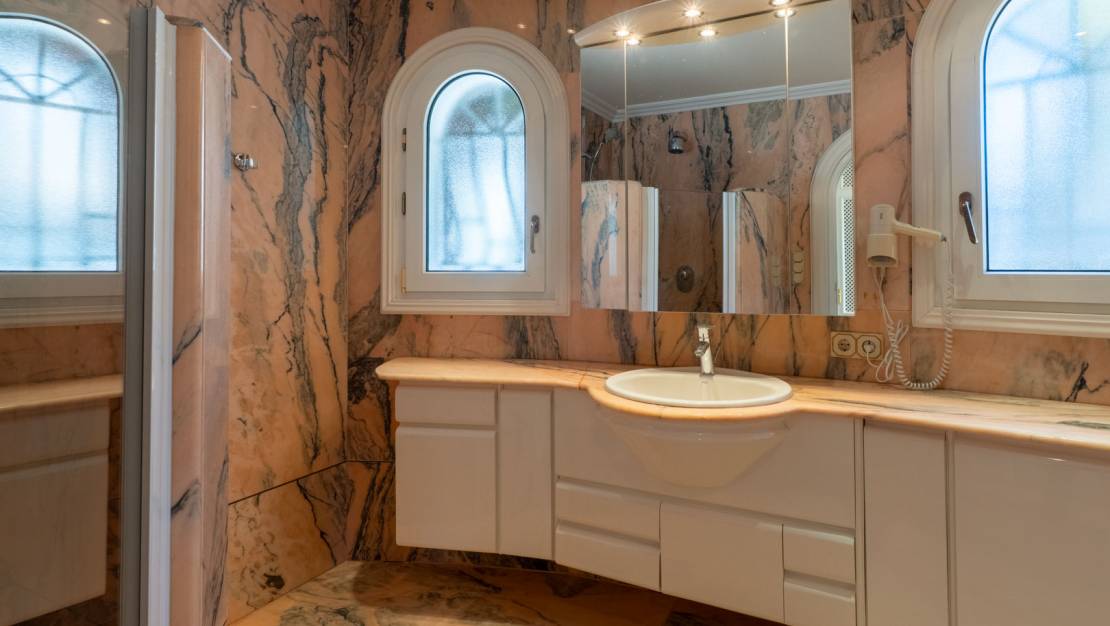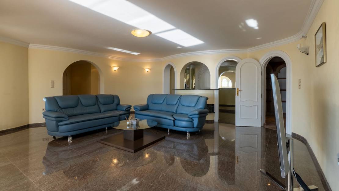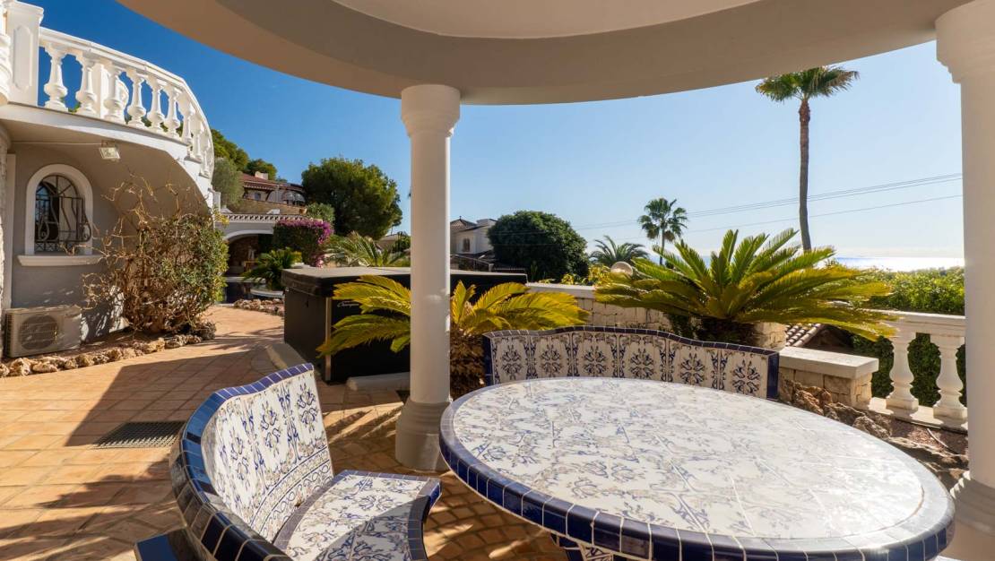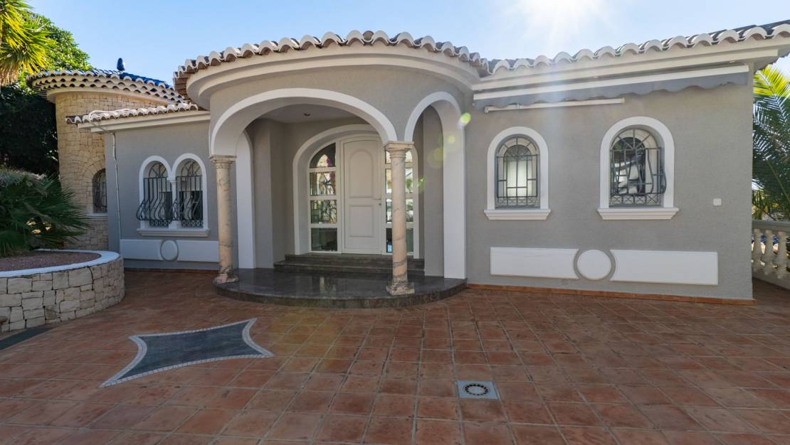 On the enchanting coast of Benissa, where the blue of the Mediterranean meets the sky, stands this luxury villa, inviting you to discover a serene, elegant, and light-filled lifestyle. From the moment you step inside, the property exudes spaciousness, privacy, and a sophisticated atmosphere that permeates every corner. The home unfolds across two floors, meticulously designed to offer maximum comfort. On the main floor, you'll be greeted by a spacious living room bathed in natural light, which opens onto a terrace with panoramic sea views—a truly spectacular sight at any time of day. Also on this floor is a guest toilet, and to the right, a separate kitchen with a utility room, connected to a dining room that also enjoys coastal views. To the left of the living room, the sleeping area comprises a bedroom with built-in wardrobes, a full bathroom, and an en-suite bedroom that incorporates an additional room, perfect for use as an office, private sitting room, or reading nook. Every detail has been carefully considered to combine elegance and functionality, creating warm and inviting spaces. From the exterior or through the garage on the ground floor, you can access a separate apartment that adds even more value to the property. This space features an open-plan kitchen and living/dining room, two en-suite bedrooms with dressing rooms, a wine cellar, and an open-plan area with an adjoining toilet, offering multiple possibilities for both guests and family use. The exterior is a true Mediterranean oasis. The impressive swimming pool becomes the heart of outdoor living, surrounded by relaxation areas with sofas and shaded spaces that invite you to unwind while gazing at the blue horizon. The fully equipped summer kitchen, located opposite the pool, is the perfect place to enjoy al fresco meals with family and friends. The property also includes a private sauna, a touch of wellness that further enhances the experience of living in this magnificent villa. Located in one of the most exclusive areas of Benissa, the villa is just steps from its most iconic beaches and coves, offering a privileged natural environment and an exceptional quality of life. A home where every day becomes an unforgettable experience.