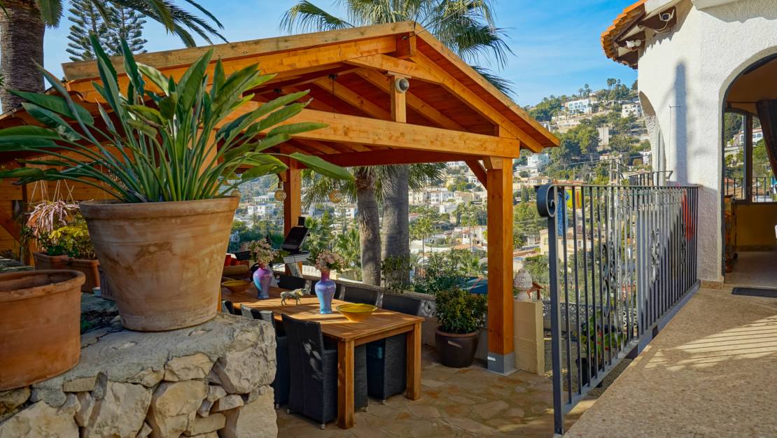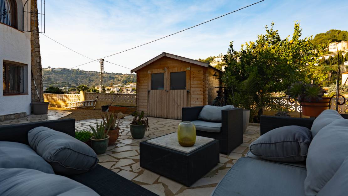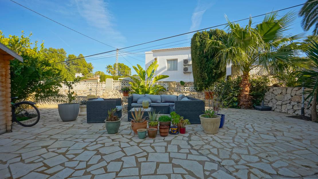 Traditional villa with separate guest apartment for sale in Benissa, This charming villa is located in the residential area of Montemar-La Viña, just a short distance from Moraira and the beautiful coastline of Benissa. The main house is arranged on one level and features a fully independent guest apartment on the semi-basement level. The main residence comprises a cosy living room with open-plan kitchen, a naya, and two double bedrooms sharing one bathroom. The guest apartment includes a living room with open kitchen, one bedroom and a bathroom. Both bedrooms in the main house are fitted with built-in wardrobes and recently installed air conditioning. Outside, you will find a spacious swimming pool, the renovation of which is included in the asking price. There is also a covered lounge area with outdoor kitchen and covered dining space, ideal for enjoying the Mediterranean climate all year round. The villa is surrounded by a low-maintenance Mediterranean garden with palm trees, fig trees, lemon trees and orange trees. For added comfort, the property offers parking space for two cars at the level of the main house, as well as an electric boiler on each floor. There is also the possibility to further extend the guest apartment. Thanks to its central location in Montemar La Vinya, all essential amenities are just minutes away, while you can still enjoy peace, space and nature. The villa is only 2 km from the stunning coastline of Benissa and close to charming walking routes, golf courses, sports facilities and attractive coastal towns. Do not hesitate and request your viewing today!