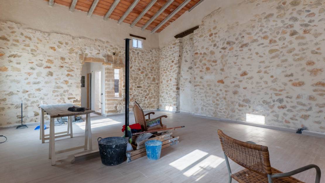 This charming property is located in a peaceful setting on the outskirts of Gata de Gorgos, a short distance from the town center. The plot offers stunning open views of Montgó mountain and the nature reserve behind the village, an ideal environment for enjoying nature and privacy. The house has been extended and partially renovated, preserving the original character of the building. It features a main living area where the dry stone walls have been retained, adding authenticity and charm. The roof has been completely renovated and raised to a height of 9 meters, allowing for the possibility of creating an attic or additional living space. In addition, the house has two smaller bedrooms, a multipurpose interior space, and a covered terrace (naya) that can be converted into one or even two additional bedrooms, easily adapting to different needs. The property already has connections to water, electricity, and sewage. Outside, the plot boasts several fruit trees, including a carob tree, highly prized in the Valencian Community. Gata de Gorgos is a welcoming town with a high quality of life, strategically located in the Marina Alta region: just 9 km from Jávea, 13 km from Dénia, and approximately an hour's drive from Valencia and Alicante. The town offers all necessary amenities, such as supermarkets, a school, a sports center, a medical center, and a music academy, as well as numerous hiking and cycling routes for those who love an active lifestyle and nature.This charming property is located in a peaceful setting on the outskirts of Gata de Gorgos, a short distance from the town center. The plot offers stunning open views of Montgó mountain and the nature reserve behind the village, an ideal environment for enjoying nature and privacy. The house has been extended and partially renovated, preserving the original character of the building. It features a main living area where the dry stone walls have been retained, adding authenticity and charm. The roof has been completely renovated and raised to a height of 9 meters, allowing for the possibility of creating an attic or additional living space. In addition, the house has two smaller bedrooms, a multipurpose interior space, and a covered terrace (naya) that can be converted into one or even two additional bedrooms, easily adapting to different needs. The property already has connections to water, electricity, and sewage. Outside, the plot boasts several fruit trees, including a carob tree, highly prized in the Valencian Community. Gata de Gorgos is a welcoming town with a high quality of life, strategically located in the Marina Alta region: just 9 km from Jávea, 13 km from Dénia, and approximately an hour's drive from Valencia and Alicante. The town offers all necessary amenities, such as supermarkets, a school, a sports center, a medical center, and a music academy, as well as numerous hiking and cycling routes for those who love an active lifestyle and nature.