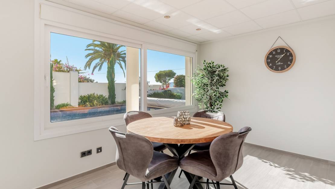 Fantastic villa located right next to the center of Moraira in the popular neighborhood of Pla del Mar. This spacious villa is ideally located about a 5-minute walk from the center of Moraira. In addition to its ideal location  in relation to the center and the beach, the property offers a practical layout, plenty of living space, and stunning views of the sea and the Peñon de Ifach (the rock in front of Calpe). It is suitable for permanent residence as well as use as a vacation home and/or rental. The villa is spread over three floors, which are connected by an internal staircase.