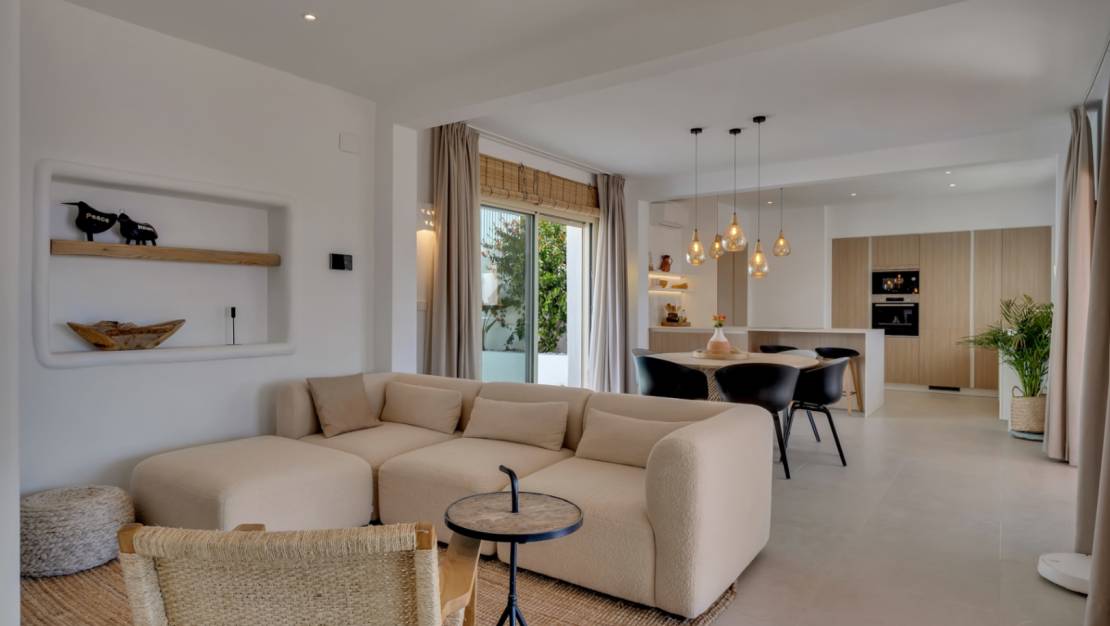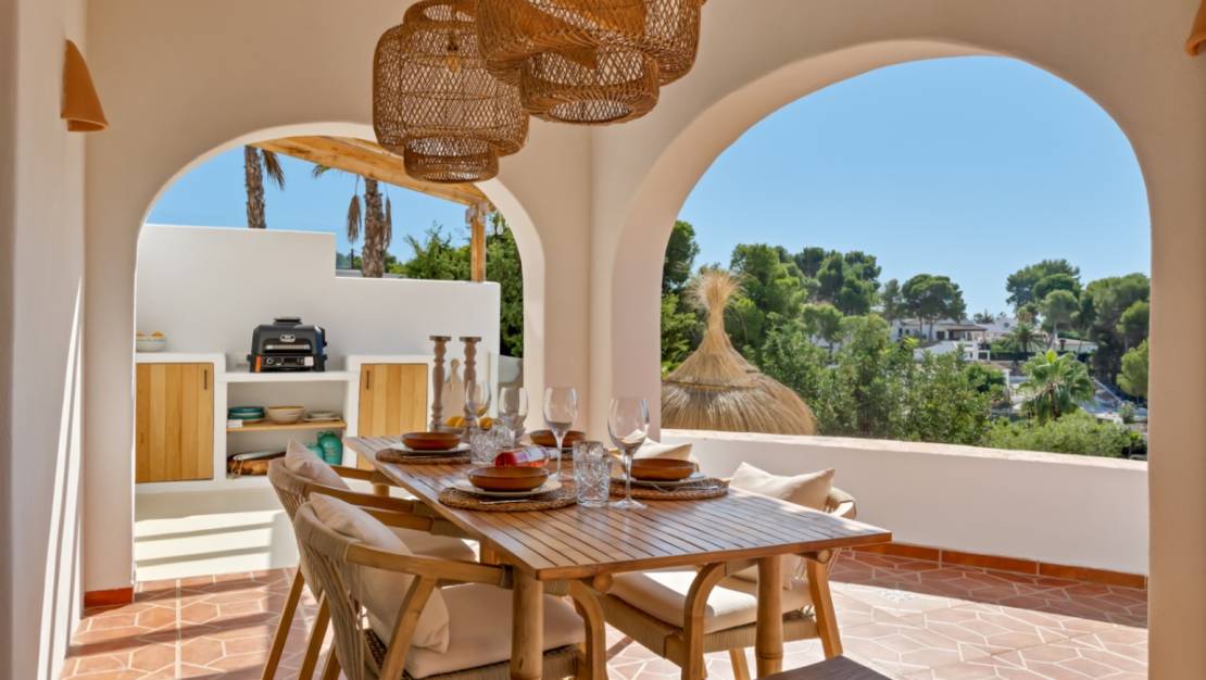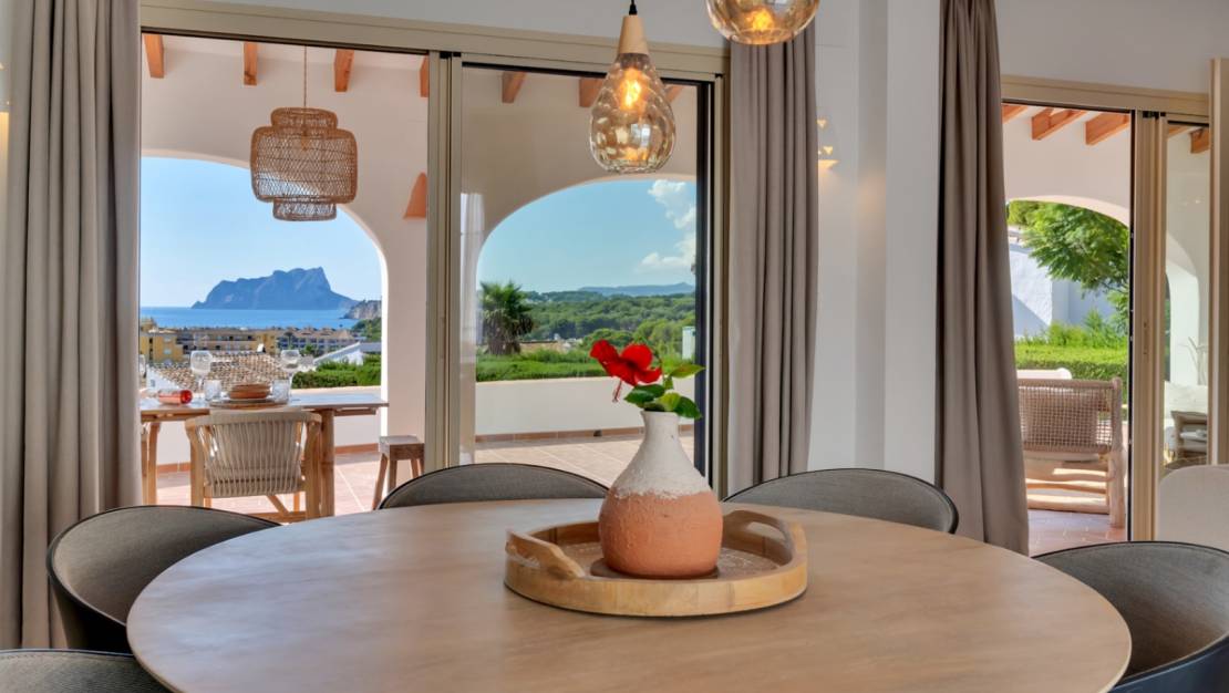 The villa has a living area of about 250 m² and has been renovated with attention to detail using high-quality materials. The design combines Mediterranean elegance with a subtle Ibiza touch. On the plot of 735 m², you enjoy a breathtaking sea view and the iconic Peñon d’Ifach.