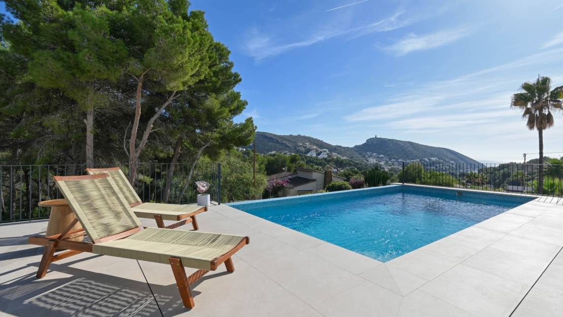 This elegant villa is located in the prestigious and highly sought-after area of El Portet in Moraira. Just 1.2 km from the beach, you can reach this Mediterranean paradise in only 3 minutes by car or a pleasant 15-minute walk.