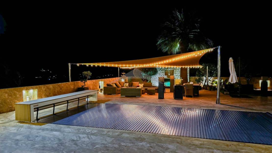 The garden is equipped with an automatic irrigation system, refined landscape lighting, and an outdoor liquid-fuel fireplace. The villa also features 39 solar panels with batteries ( 35 kWp m), providing near-total energy autonomy and allowing the swimming pool to be maintained at 25°C during winter.