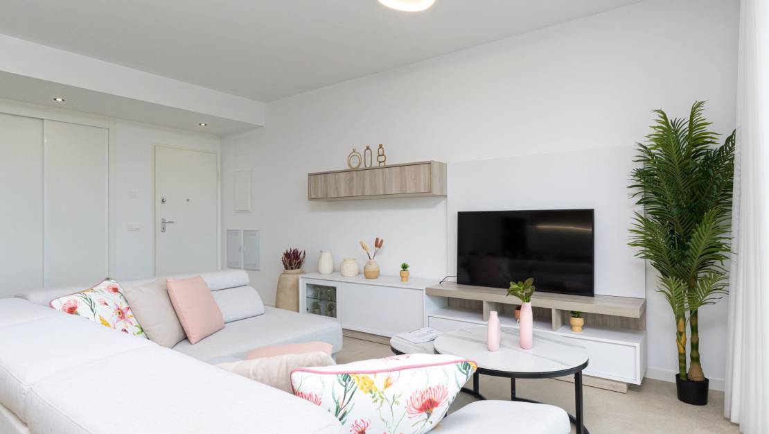 The exteriors of these properties are designed to maximize comfort and enjoyment of the Mediterranean climate. Each home features a terrace, ideal for relaxing and enjoying the sea views. Additionally, ground-floor units have private gardens, providing extra space for outdoor leisure. For those seeking a touch of luxury, some properties include a private solarium, perfect for sunbathing in the privacy of your home. The option of a private pool in certain types adds an extra level of exclusivity and comfort.