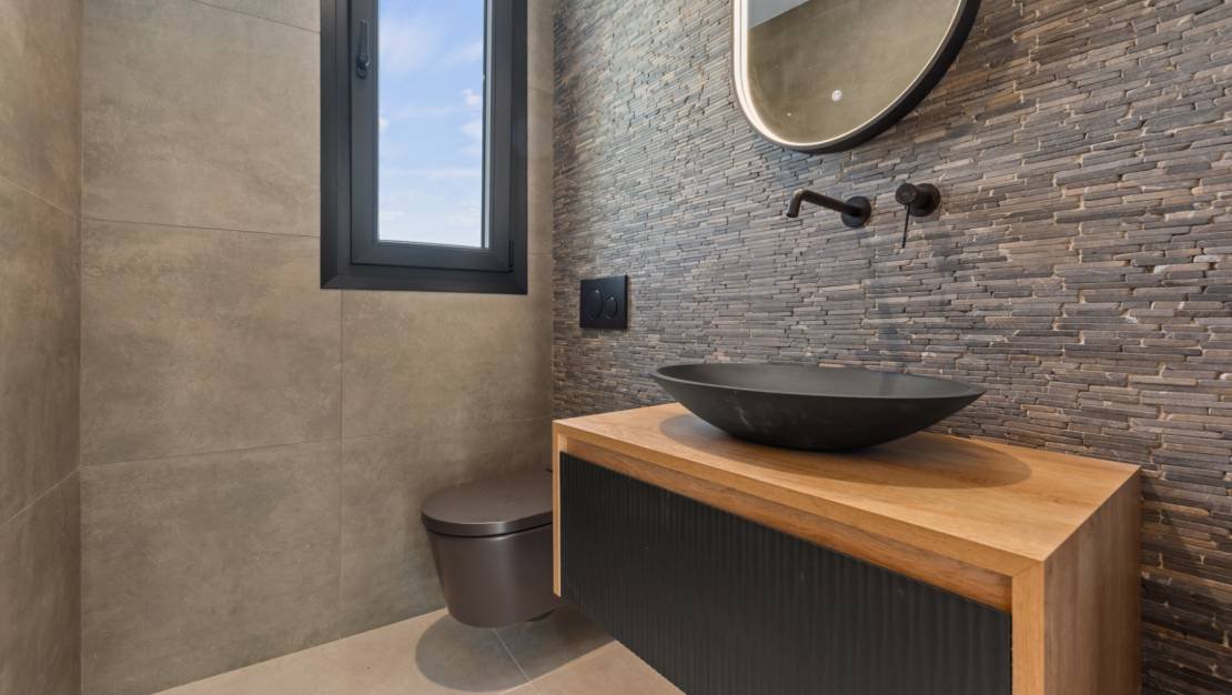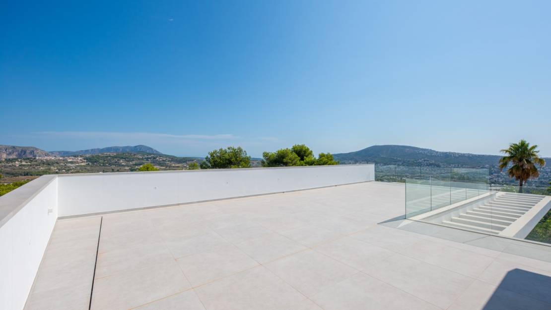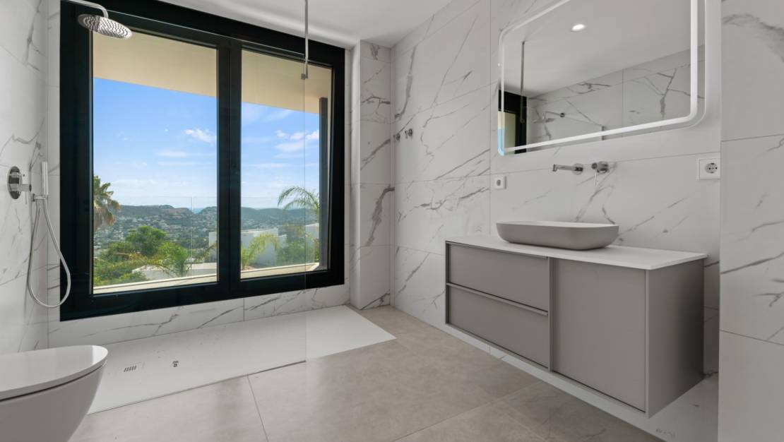 New, modern luxury villa with panoramic sea and mountain views. Opportunity to purchase a new, finished luxury home. The house is being sold unfurnished; the kitchen and bathrooms are fully equipped with high-quality finishes and appliances. We have two driveways, one to the parking lot in front of the main door of the house and the other directly to the garage in the basement. There are three spaces and additional storage space, with the possibility of adding more bedrooms. The house is ready to install an elevator. We enter through the main door into the hall with guest toilets. On this level, we find a large living and dining room with an open kitchen, two bedrooms, and one bathroom. The pool with a large terrace is located in front of the living room. We go up to the highest level where we find the master bedroom with its bathroom and a huge terrace with stunning panoramic views. The house has several expansion possibilities, such as adding more bedrooms or a barbecue and jacuzzi. Contact us for a visit.