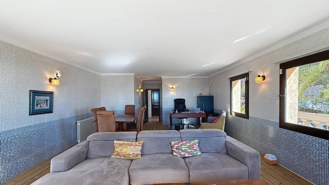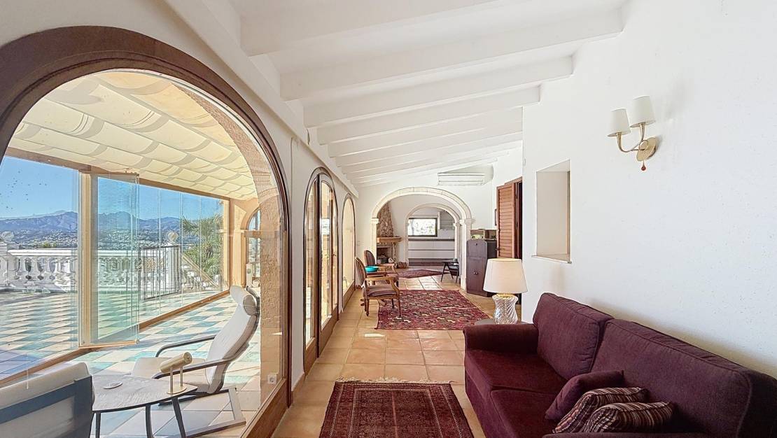 Villa with panoramic sea views on a double plot – Kalmias Residential Area, Cumbre del SolA unique property with views of the Mediterranean and maximum privacyThis exclusive villa is located in the Kalmias residential area of the prestigious Cumbre del Sol development, between Jávea and Moraira, in the municipality of Benitachell. Built on a double plot of 1,746 m², the property stands out for its south-facing orientation, absolute privacy and impressive panoramic sea views. Surrounded by a spectacular Mediterranean garden that is perfectly maintained, this property represents the essence of the Northern Costa Blanca lifestyle. Layout and spacious roomsWith a total built area of 663 m², of which 445 m² correspond to the main house, this villa offers a functional layout on two floors, designed for comfort and spaciousness. Main floorOn this floor we find: A bright main living room with direct access to a large terrace with sea views.A second living room perfect as a reading or relaxation area, also with access to the terrace.A south-facing glazed dining room, which acts as a real viewpoint over the Mediterranean.An open-plan, fully equipped kitchen with spectacular views.An double bedroom and the master bedroom, the latter with an en-suite bathroom and direct access to the terrace.A guest toilet and a laundry area.Lower floorConnected by an internal staircase, the basement floor has: A spacious multi-purpose room ideal as an office, gym or leisure room.A living room with access to the lower terrace.Two very spacious double bedrooms, a full bathroom, auxiliary kitchen and several storage rooms.Outdoor areas and Mediterranean lifestyleOutside, the property offers: A 34 m² enclosed garage.Several open and covered terraces to enjoy the climate all year round.A barbecue area ideal for gatherings with family and friends.A private swimming pool surrounded by a lush garden that provides privacy and an incomparable natural environment.A villa designed to enjoy the sun, sea and tranquillityEvery corner of this property is designed to offer well-being, spaciousness and connection with the environment. Its south-facing orientation guarantees natural light throughout the day, while the spacious terraces allow you to enjoy unique sunrises and sunsets over the sea. See also additional videos of this villa: Drone shots: https://youtu.be/69oP-jNQjUw Garden shots: https://youtu.be/iOjCR98Sj2Y Kalmias Residential Area – Cumbre del Sol, BenitachellThe Kalmias Residential Area is one of the most established and sought-after areas of Cumbre del Sol, comprising 189 plots ranging from 750 to 1,200 m². Its location, at the southern entrance to the development, offers a perfect combination of tranquillity, views and proximity to amenities. From Kalmias you can enjoy a privileged panoramic view of the Mediterranean Sea, the Moraira Valley and the Peñón de Ifach, with the Sierra de Bernia in the background. It is also just a few minutes away from: Beaches and coves such as Cala del Moraig, Cala Llebeig and Cala de los Tiestos.Dreamsea Mediterranean Camp, with a bar and restaurant facing the sea.Lady Elizabeth International School, sports centres, restaurants and supermarkets such as Mercadona and Pepe La Sal.Moraira and Jávea, just a few minutes' drive away.Living in Kalmias means enjoying a natural, exclusive environment with all amenities within easy reach. Would you like more information or to visit this property?If you are looking for a villa with sea views, privacy and spacious rooms in one of the most sought-after areas of the Northern Costa Blanca, please do not hesitate to contact us. We will be delighted to provide you with all the information you need and accompany you on your visit to this spectacular property.