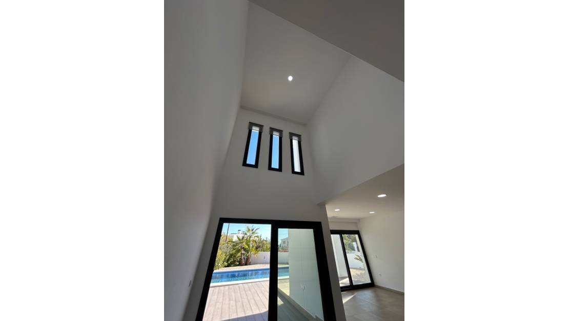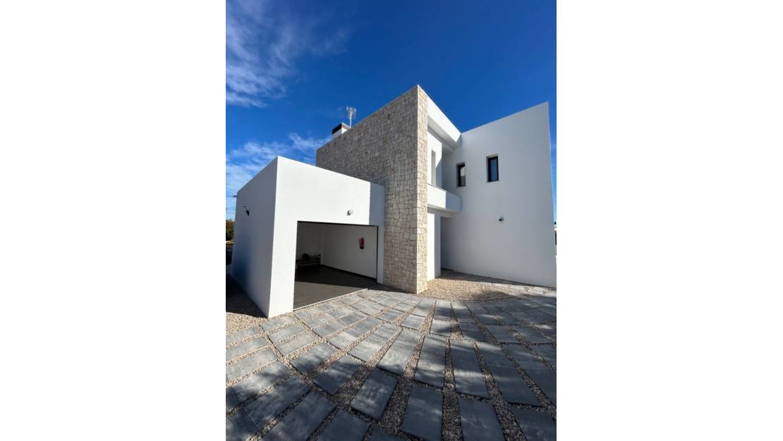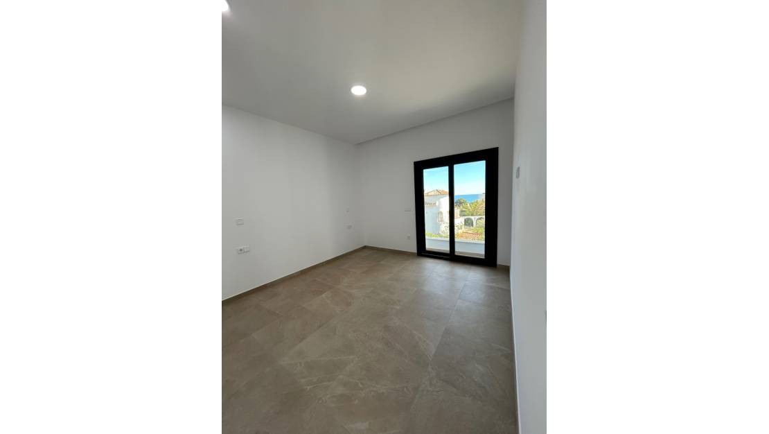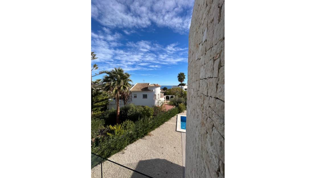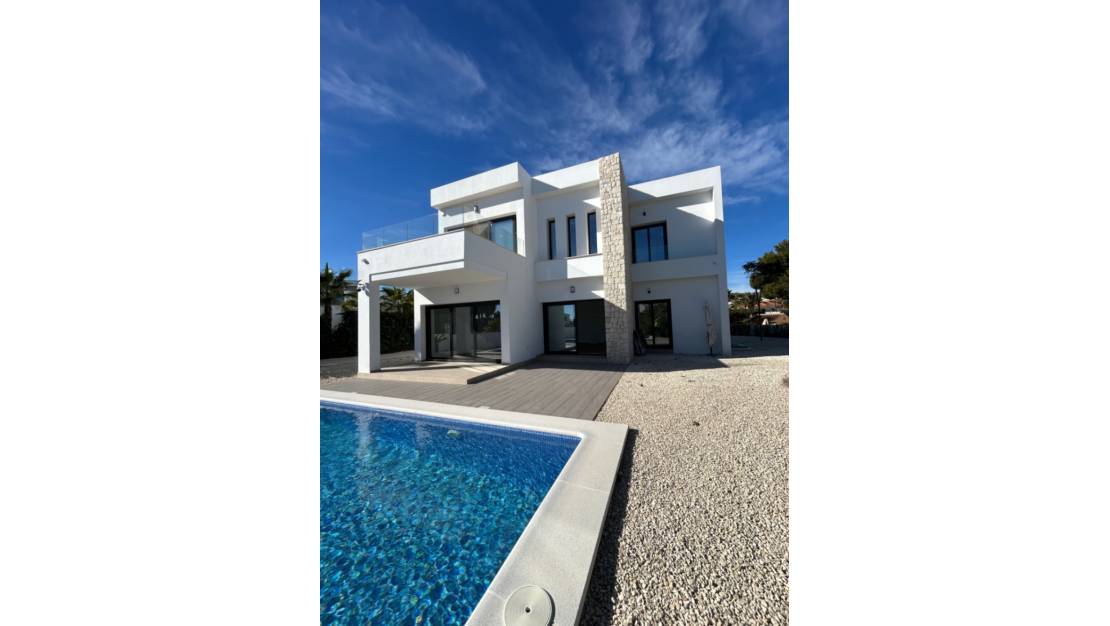 Modern newly built villa with sea views for sale on a large plot within walking distance of La Fustera beach and amenities in BenissaThis modern newly built villa, never lived in and recently fully finished, is situated on a remarkably large plot within walking distance of La Fustera beach, several restaurants, a supermarket, and a bakery. Additionally, both Calpe and Moraira are a short drive away, making this property an excellent base on the Costa Blanca. We enter the property through an automatically controlled electric gate. A long driveway leads us to the villa and immediately creates a sense of tranquility, space, and privacy. The villa is fully ready to move in for its first residents. Through the entrance hall, with a separate practical space for the washing machine and storage, we reach the open living and dining area with double ceiling height. Here, you will also find the fully equipped modern kitchen with island, where one can comfortably sit with bar stools. Large three-part sliding doors provide plenty of natural light and give direct access to the terraces, partly covered and partly open, so you can enjoy the Mediterranean climate all day long. Outside, you will find a beautiful private pool and a nicely landscaped garden with an automatic irrigation system, perfect for relaxing in peace or entertaining guests. On the ground floor, there is also a spacious bedroom with built-in wardrobes and sliding doors to the outside, as well as a stylish bathroom with a walk-in shower. We reach the upper floor via the staircase. Here, there is another double bedroom and a spacious modern bathroom. The master bedroom features an ensuite bathroom and a very large terrace with stunning sea views, views of the Peñón de Ifach, and views towards the center of Moraira. A significant advantage of this property is the impressive, flat plot, which extends largely behind the villa. This offers many possibilities to create your own outdoor experience: a vegetable garden, petanque court, a chill-out zone, or play area? — here you can fully bring your ideas to life! The villa is highly energy-efficient and has an energy label A, pre-installation for solar panels, aerothermal underfloor heating and hot water, with separate control per room. Additionally, there is ducted air conditioning with individual zone control. All bedrooms are equipped with built-in wardrobes. The property offers ample parking space for multiple cars and also for a motorhome or boat. Key features: Modern newly built villa, never lived inExceptionally large plotWithin walking distance of La Fustera beachSea viewsSouth orientationPrivate pool3 bedrooms and 3 bathroomsLandscaped garden with automatic irrigation systemUnderfloor heating and air conditioning with zone controlEnergy label AGarage + ample parking optionsThis property combines a good sun position, energy-efficient comfort, sea views, plenty of outdoor space, and a prime location near the beach, Calpe, and Moraira. An ideal home for those looking for a move-in ready newly built villa with space and sun, without compromising on accessibility. Please feel free to contact us for more information or to schedule a viewing. Price excludes taxes and purchase costs.