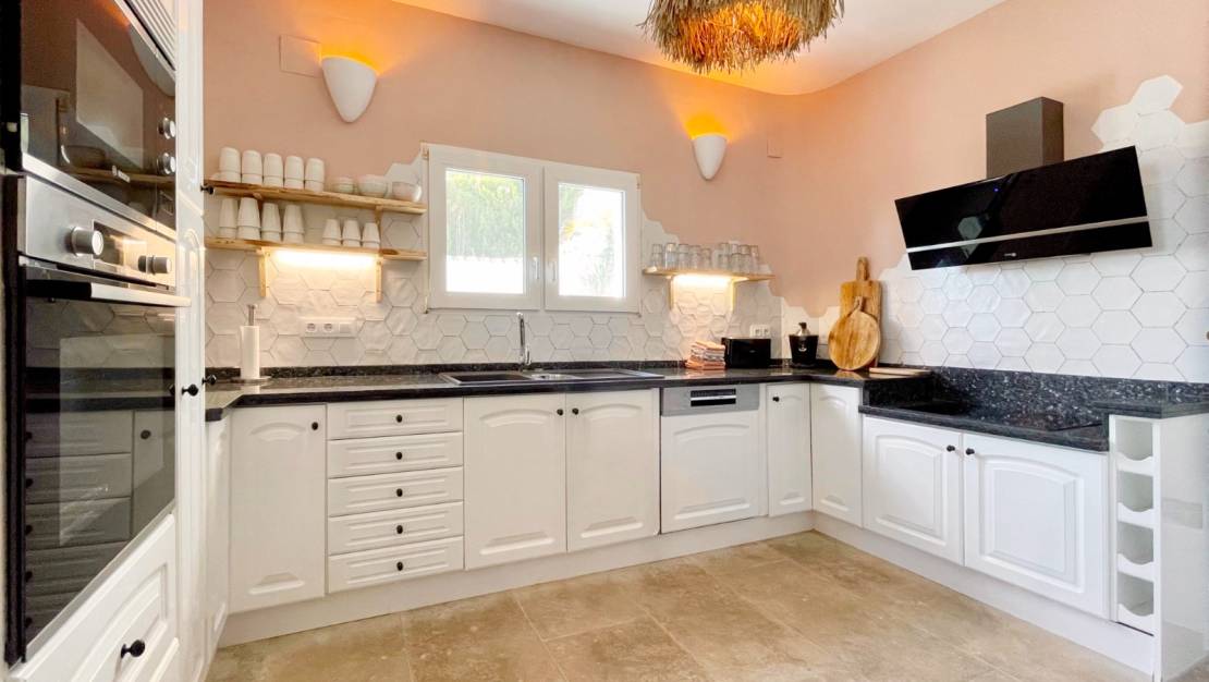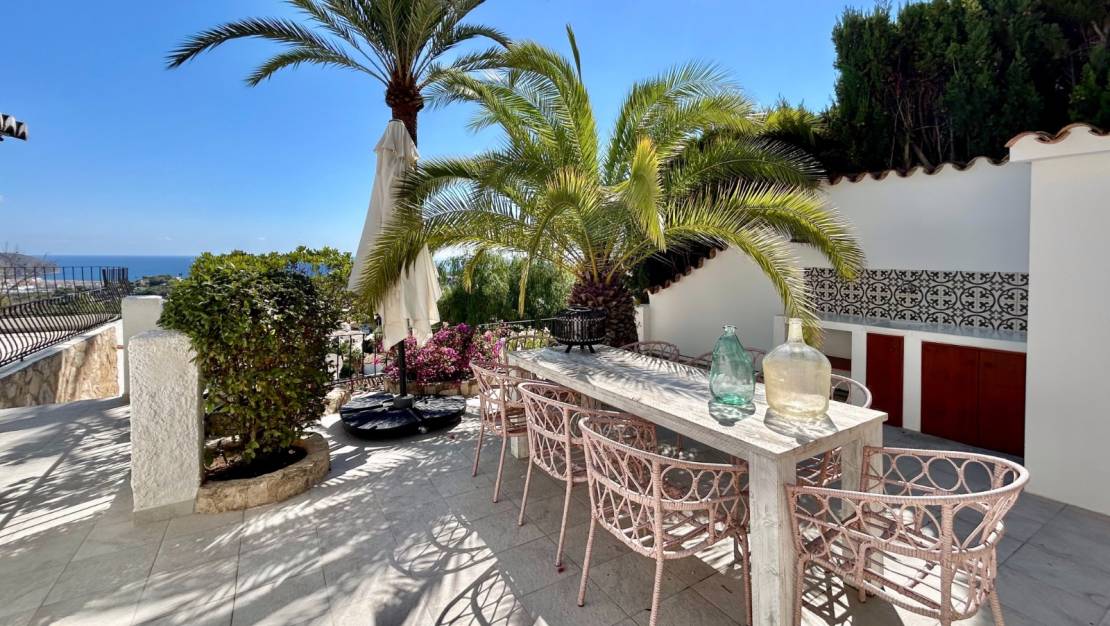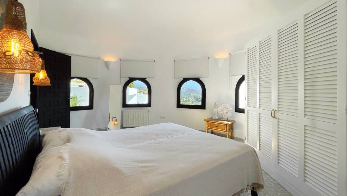 Просторный и очень уютный дом в популярном районе Бенимейт с потрясающим видом как на зелень, так и на центр Морайры и прекрасное синее Средиземное море. Среди ярких деталей – окна в арабском стиле и зеленая черепица на крыше, которые придают вилле уникальный облик. Кроме того, вилла имеет два этажа, несколько террас, большую террасу у бассейна с прилегающей крытой зоной отдыха/бара, а также прекрасный вид на море из всех комнат. На территории также есть отдельная прачечная и просторная кладовая.