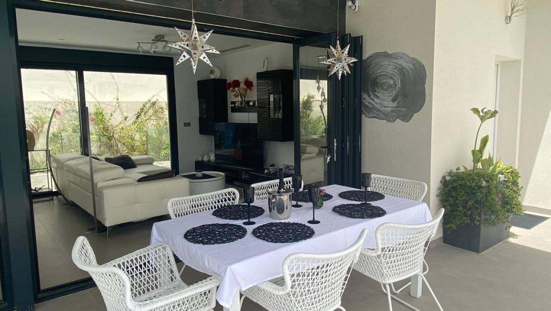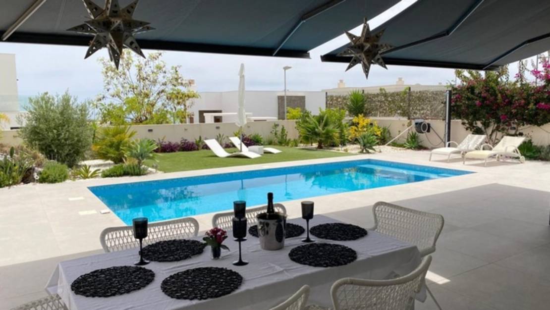Современная вилла с 3 спальнями, отдельной квартирой с 2 спальнями, видом на море и собственным бассейном – построена в 2022 году. Мы с гордостью представляем эту потрясающую современную отдельно стоящую виллу, расположенную на двух этажах, с ярким и современным дизайном. Вилла состоит из основного дома с 3 спальнями и отдельной квартиры с 2 спальнями, построенной в 2022 году. Расположенная в тихом и востребованном жилом районе, вилла предлагает легкий доступ к магазинам, ресторанам, пляжам и природным тропам, сочетая уединение, комфорт и удобство. Основные характеристики: Расположенная на двух этажах с отдельными гостевыми комнатами; Частный бассейн площадью 30 м²; Красивый ландшафтный сад с просторными террасами; Панорамный вид на море и горы; Большая солнечная терраса площадью 121 м² с обзором 360° и перголой; Гараж и просторная парковка на подъездной дорожке; Главный этаж: Прихожая со встроенными шкафами ведет в светлую гостиную открытой планировки с современной полностью оборудованной кухней и двустворчатыми дверями во всю длину, ведущими на переднюю террасу. Интерьер наполнен естественным светом благодаря окнам от пола до потолка, что создает плавный переход между внутренним и внешним пространством. На этом этаже также расположены: Роскошная главная спальня с раздвижными дверями на террасу у бассейна, видом на море и сад, гардеробной и большой ванной комнатой. Вторая спальня с двуспальной кроватью со встроенными шкафами и выходом на террасу. Третья спальня, вторая ванная комната и хозяйственное помещение. Гостевые апартаменты (нижний этаж) На нижнем этаже расположены отдельные апартаменты с 2 спальнями и отдельным входом — идеально подходят для гостей, большой семьи или сдачи в аренду. Включает в себя: Две светлые спальни со встроенными шкафами и выходом на патио Гостиная открытой планировки с кухней Частная терраса-патио и большой гараж Отдых на свежем воздухе Вилла предлагает просторные террасы по периметру виллы, зону барбекю с подключением к воде и электричеству (идеально подходит для летней кухни), крытую столовую и гостиную, а также отдельный туалет и место для хранения вещей. Солярий на крыше площадью 121 м² охватывает весь этаж и предлагает захватывающий панорамный вид на 360°, включая Средиземное море, скалу Кальпе, холмы Альтеа и горы Сьерра-Берния и Сьерра-Айтана. Благодаря подключению к воде и электричеству, вилла идеально подходит для обедов на свежем воздухе, развлечений или отдыха. Дополнительные характеристики Полностью оборудованная современная кухня с бытовой техникой Высококачественная отделка во всем доме Ванные комнаты полностью отделаны плиткой Канальное кондиционирование Встроенные шкафы Местоположение Расположенная в тихом жилом районе, но в то же время недалеко от местных городов, норвежских и британских школ, полей для гольфа и спортивного центра La Nucía, эта вилла имеет идеальное расположение. Пляжные курорты Альбир, Альтеа и Бенидорм находятся всего в нескольких минутах езды, а аэропорт Аликанте — примерно в 30 минутах езды на машине. Краткое описание: Эта современная двухэтажная вилла с 5 спальнями предлагает универсальное жильё благодаря отдельным гостевым апартаментам, большому бассейну и потрясающим видам на море. Идеально подходит для роскошного семейного дома или отдыха, сочетая 
