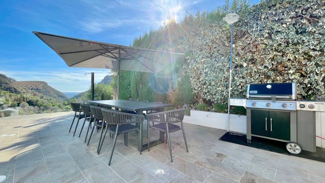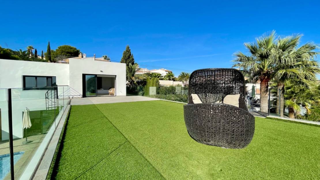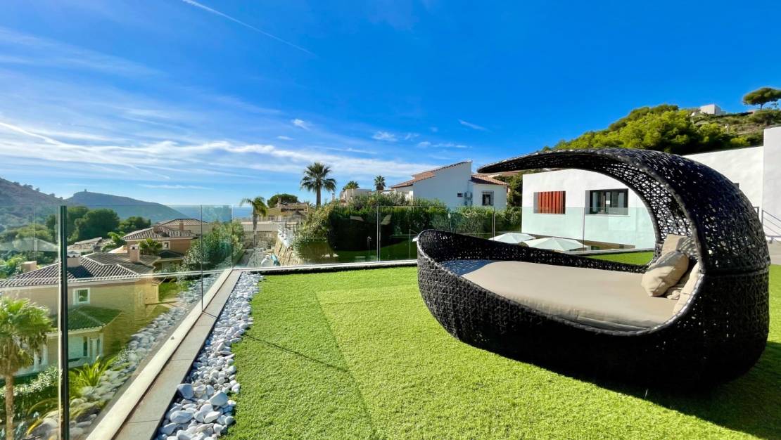 Просторная терраса для загара с собственным бассейном — идеальное место для отдыха и наслаждения прекрасным климатом Коста-Бланки. Бассейн с подогревом и летним душем позволяет комфортно плавать круглый год. Также имеется уютная зона барбекю, идеально подходящая для ужинов на свежем воздухе с видом на море. Сад не требует особого ухода, что обеспечивает ему ухоженный вид. Кроме того, на участке есть просторное парковочное место и запирающийся навес.