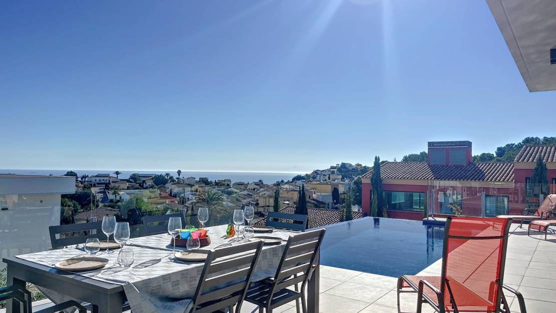 Современная вилла с видом на море недавнего строительства с частным бассейном, расположенная в жилом районе Лириос урбанизации Кумбре дель Соль, Бенитачель (между Хавеа и Морайрой). Вилла, построенная в 2021 году на участке площадью 803 м2, состоит из общей застроенной площади 303 м2 (191 м2 жилья, 86 м2 террас и 26 м2 крытой парковки с беседкой). Вилла построена на двух этажах и имеет три спальни с двуспальными кроватями, две ванные комнаты, гостиную, кухню с кладовой на главном этаже и спальню с двуспальной кроватью, гостиную и ванную комнату в подвале с независимым доступом. Вилла отделана качествами очень высокого уровня и оснащена теплыми полами, кондиционерами через воздуховоды через одновременную систему кондиционирования воздуха и производства бытовой горячей воды марки MITSUBISCHI ELECTRIC® на основе внешнего теплового насоса с высокой энергоэффективностью. Вилла окружена красивым садом в средиземноморском стиле с низким уровнем обслуживания с автоматическим орошением.