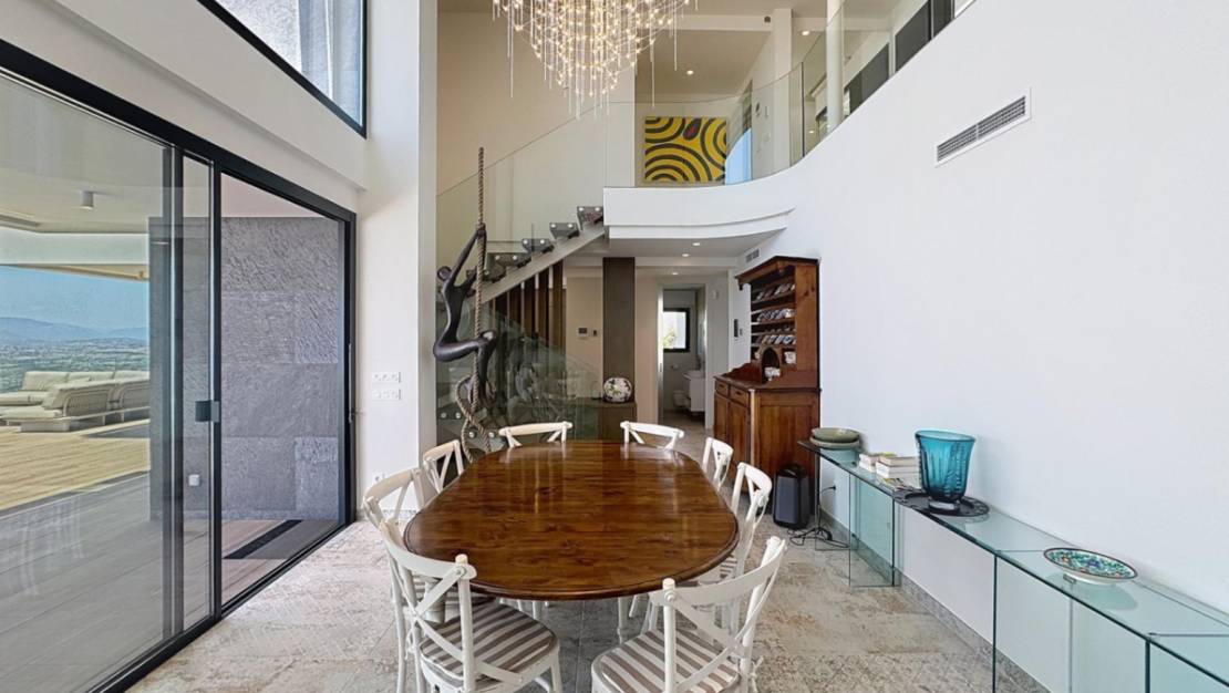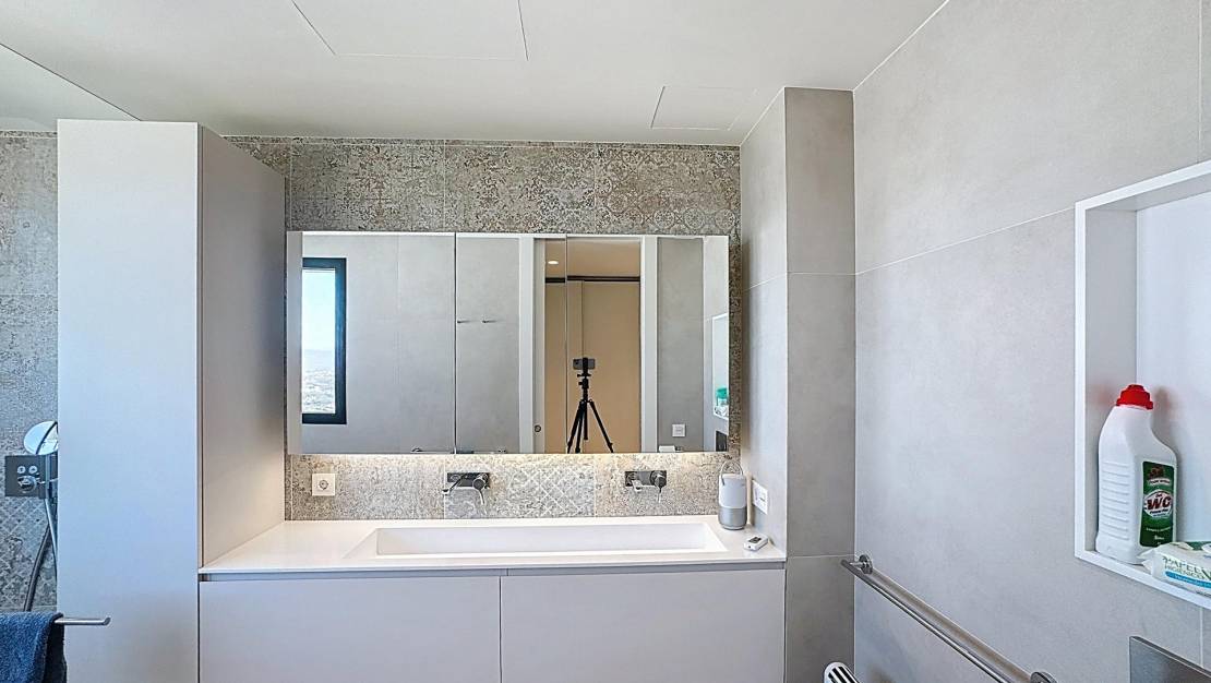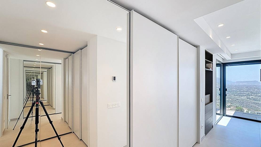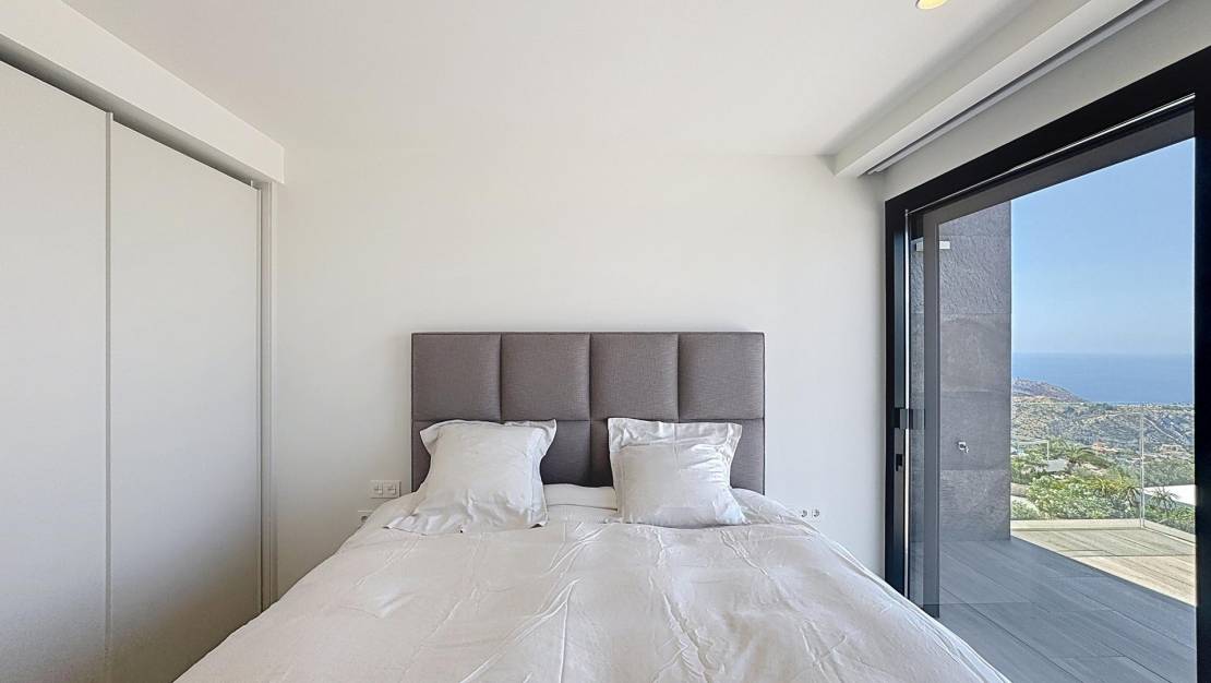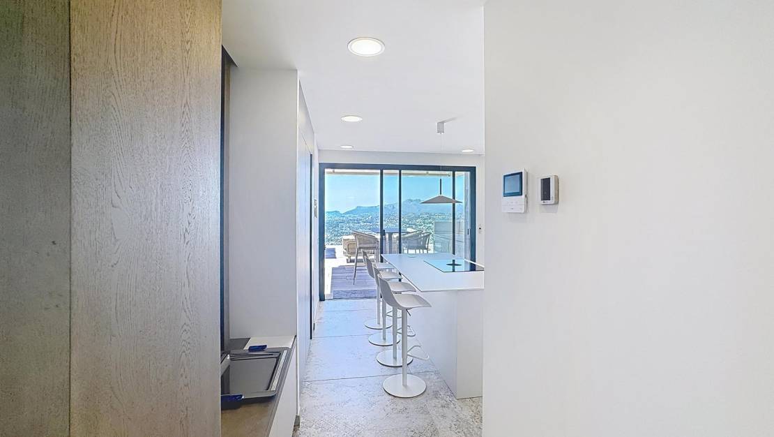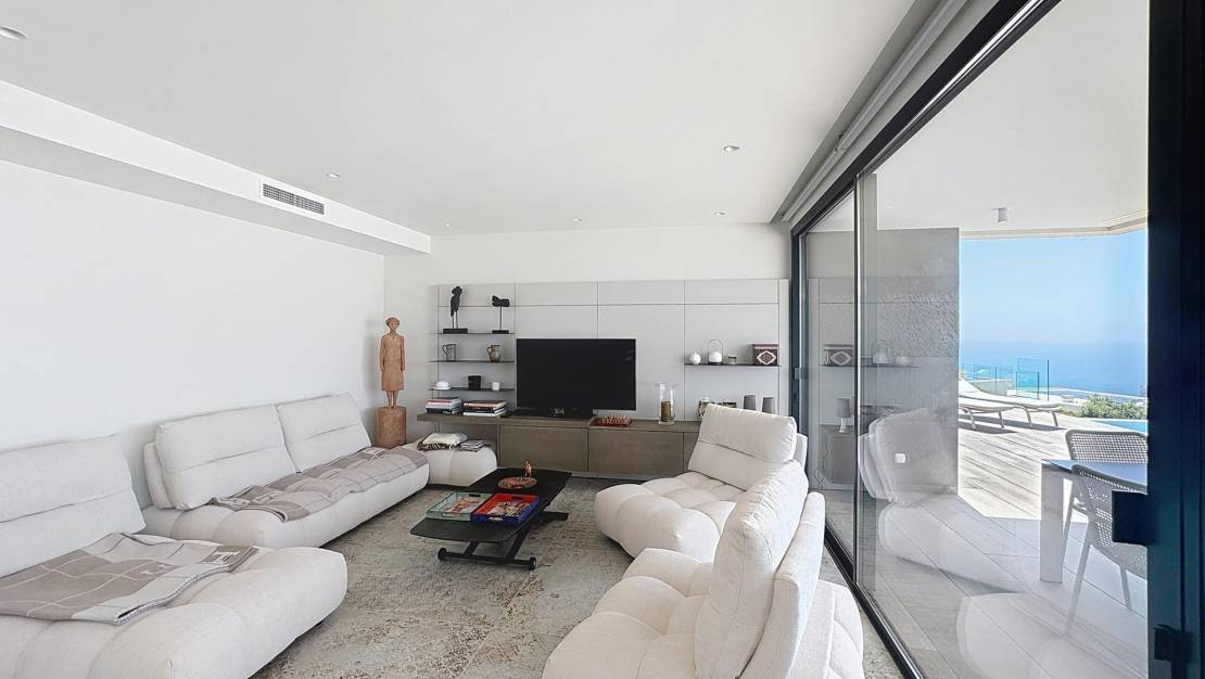 Роскошная вилла с панорамным видом на море в эксклюзивном районе Хасминес, Кумбре дель Соль Современный дизайн, максимальная конфиденциальность и несравненно красивый видЭта впечатляющая роскошная вилла расположена в одном из самых привилегированных мест северного побережья Коста-Бланки: жилом районе Хасминес в престижной урбанизации Кумбре дель Соль, между Мораирой и Хавьей, в муниципалитете Бенитачел. Уникальный анклав, где авангардный архитектурный дизайн сочетается с впечатляющей природной средой. Недвижимость выделяется своими спектакулярными панорамными видами на Средиземное море, простирающимися от побережья Мораиры и Бениссы до величественного Пеньон де Ифач в Кальпе, вдоль славной Сьерра де Берния, все это обрамлено глубокосиними водами моря. Эксклюзивная недвижимость, распределенная на трех этажахС общей площадью построек 544 м² на угловом участке 940 м², эта вилла предлагает 5 спален для двоих, все со своими ванными комнатами, а также просторные террасы, открытые жилые пространства и несколько зон на улице, разработанных для наслаждения в течение всего года. Первый этаж: функциональность и впечатляющий видМы входим в здание через элегантный вход, где находится крытый гараж (46 м²), техническое помещение с прачечной и главный вход в дом. С этого места открывается впечатляющее открытое пространство с двухуровневой гостиной и огромным панорамным окном с видом на море. На этом уровне расположены три спальни для двоих, все с встроенными шкафами, собственными ванными комнатами и выходом на террасы с видом. Главная спальня дополнительно имеет элегантную гардеробную и выход на частную террасу. Первый этаж: открытые пространства, свет и связь с улицейПо очень удобной внутренней лестнице мы входим в пространство, которое впечатляет своей просторностью и светом. Гостиная-столовая с двойной высотой доминирует благодаря 8-метровому окну, которое обрамляет море как картину. Современная полностью оборудованная кухня с отдельной кладовой выходит на уличную террасу. На этом этаже также находится туалет. Из кухни и гостиной есть доступ к главной террасе с частным бассейном, средиземноморским садом и барбекю с летней кухней, идеально подходящим для наслаждения климатом и видом круглый год. Цокольный этаж: квартира для гостей с отдельным входомСнаружи по лестнице вы попадаете в квартиру для гостей, которая состоит из двух спален для двоих, двух полноценных ванных комнат, кондиционеров и крытой террасы с впечатляющим видом на природную окружающую среду и море. Оборудование и первоклассные качестваКаждая деталь этой недвижимости тщательно подобрана для обеспечения максимального комфорта и эффективности: Теплый пол и кондиционеры с воздушными каналамиСистема домашней автоматизации, сигнализация и высококачественная отделкаФотовольтаическая установка мощностью 15 кВтБассейн с моторизованным покрытиемУличная кухня и озелененные садыЭта вилла предлагает не только роскошный опыт, но и устойчивость и энергоэффективность. Хотите жить в такой вилле?Если вы ищете эксклюзивное жилье на северном побережье Коста-Бланки, с конфиденциальностью, современным дизайном и несравненно красивым видом, то это жилье в районе Хасминес именно для вас. Свяжитесь с нами сегодня и узнайте, почему так много людей выбрали Кумбре дель