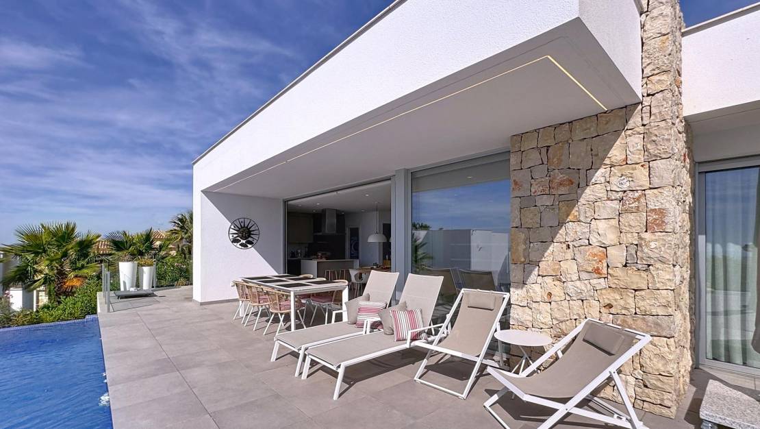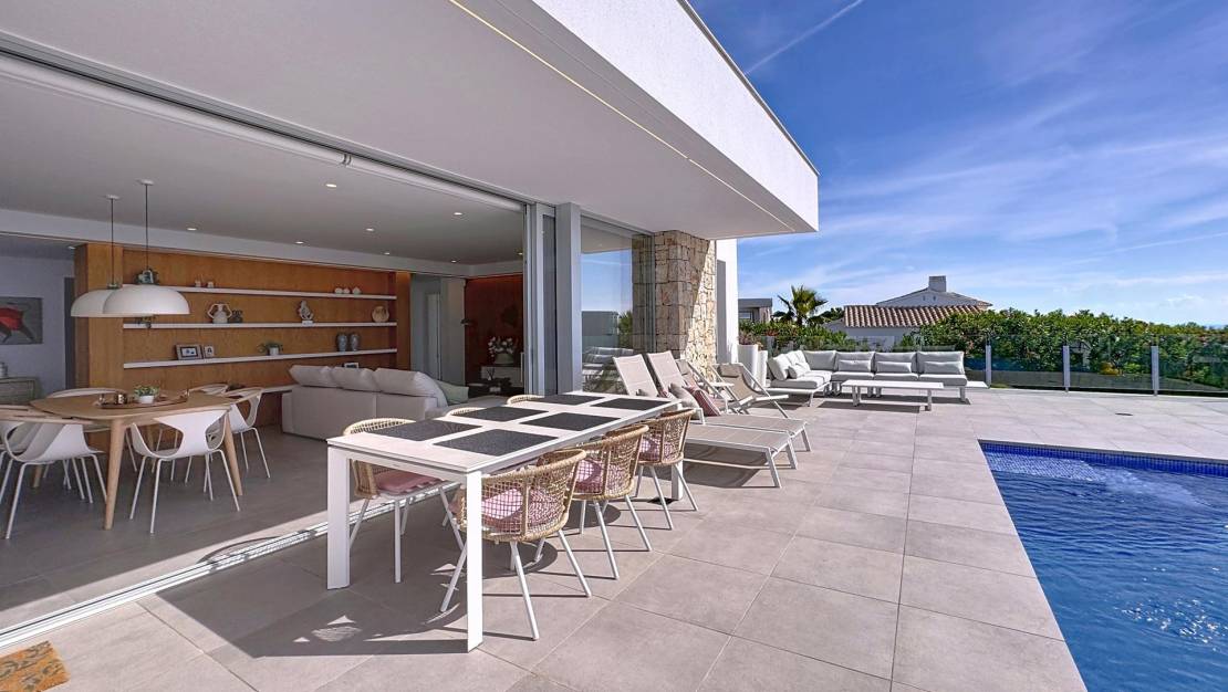 Современная вилла на продажу в жилом районе Магнолии, Кумбре дель СольСовременная и функциональная недвижимость на северном побережье Коста-БланкиЭта вилла в современном стиле расположена в престижном жилом районе Магнолии, в пределах застройки Кумбре дель Соль, между Хавьей и Мораирой, в очаровательной общине Бенитачел. Привилегированное местоположение, где спокойствие, панорамы и дизайн соединяются, чтобы предложить непревзойденное качество жизни. Основные характеристики виллыОбщая построенная площадь: 244 м² Площадь недвижимости: 139 м² Одноэтажная планировка 3 двухместные спальни 2 полные ванные комнаты Просторная гостиная-столовая с открытой кухней Прачечная и подсобное помещениеГлавная спальня и гостиная имеют прямой выход на террасу, где выделяется бассейн с бесконечным краем, с открытыми видами, которые приглашают расслабиться и насладиться средиземноморским климатом. Недавняя постройка и высокоэффективное оборудованиеПостроенная в 2021 году, эта вилла находится в отличном состоянии и имеет новейшие удобства: Водяное отоплениеКондиционирование воздуха с воздуховодами с аэротермальным системой, который также обеспечивает подачу горячей водыСистема механической вентиляции с рекуперацией тепла и теплообменникомУкрепленный средиземноморский сад, окружающий недвижимость, создающий естественный и дружелюбный климатВсе это делает эту недвижимость эффективной, комфортной и готовой к заселению. Эксклюзивный образ жизни в Кумбре дель СольЖизнь в этой вилле означает наслаждаться современным, светлым и хорошо связанным жильем, идеально подходящим как для постоянного, так и для второго жилья. Ее расположение в жилом районе Магнолии гарантирует спокойствие и, в то же время, близость ко всем необходимым услугам, пляжам и очаровательным прибрежным городкам. Обзор жилого района МагнолииЖилой район Магнолии находится в пределах застройки Кумбре дель Соль в Бенитачеле, очень близко к районам Лирисос и Хасминас. Он характеризуется большими, частными участками, идеально ориентированными для максимального использования естественного света и средиземноморского климата. Окруженный природой и всего в нескольких минутах езды от эксклюзивных бухт, таких как Мораиг, Ллебиг и Лос Тиестос, Магнолии — идеальное место для тех, кто ищет спокойную обстановку, не отказываясь от близости к Хавье, Мораире и всем их удобствам. Свяжитесь с намиЕсли вы ищете современную виллу, готовую к проживанию в Кумбре дель Соль, не стесняйтесь связаться с нами. Мы будем рады предоставить вам дополнительную информацию и организовать персонализированный просмотр этой уникальной недвижимости.