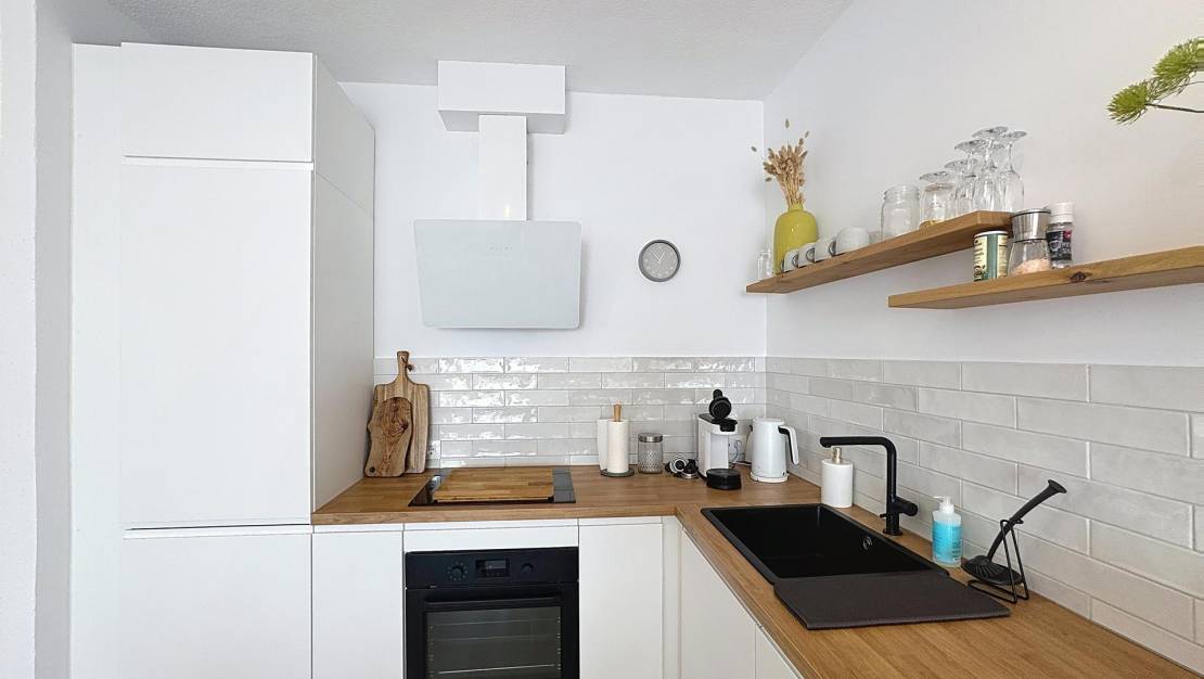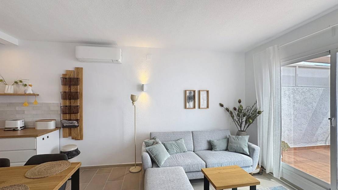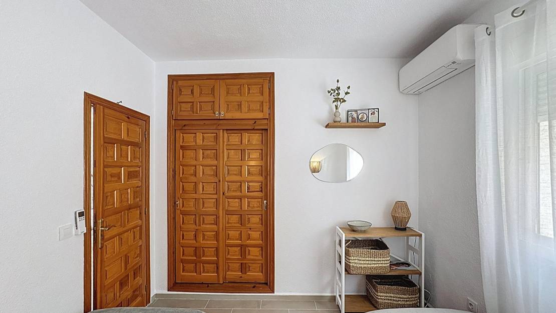 Отремонтированная квартира с захватывающим видом на море в Pueblo Panorama – Cumbre del SolЖилище, которое сочетает комфорт и эксклюзивностьМы представляем эту отремонтированную квартиру, расположенную в престижном районе Pueblo Panorama, в урбанизации Cumbre del Sol, между Хавией и Мораирой в муниципалитете Бенитачель. Квартира имеет общую площадь 89 м², из которых 69 м² занято квартирой и 20 м² – террасой, идеальным местом для наслаждения несравненным видом на Средиземное море. Планировка и основные характеристикиЭта квартира спроектирована для обеспечения комфорта и функциональности в каждом уголке: Две спальни для двоих с встроенными шкафами.Просторная ванная комната.Гостиная с открытой кухней, идеально интегрированная с террасой.Три кладовки в холле, предлагающие много места для хранения.Приватная терраса с панорамным видом, идеальное место для расслабления и наслаждения морем.Кондиционирование воздуха с функцией обогрева и охлаждения во всех помещениях, для комфорта круглый год.Жилище готово к заселению, идеально как основное место проживания, второй дом для отпуска или для инвестиции. Pueblo Panorama – привилегированная локацияКвартиры в Pueblo Panorama выделяются своей юго-восточной ориентацией, что гарантирует обилие солнечного света в течение всего дня и уникальный вид на Средиземное море. Жители могут наслаждаться 8 общественными бассейнами, разбросанными по различным зонам, каждый из которых имеет солнечные террасы для отдыха и наслаждения климатом Коста-Бланки. Кроме того, локация безупречна: 1 км: Международная школа Леди Элизабет.2-3 км: Пляж Морайг и Кала Тиесто, а также торговый центр Адельфас с супермаркетом Пепе Ла Саль, рестораном Ла Кумбре, аптекой и другим.4-5 км: Супермаркеты Mercadona и Mas y Mas, рядом с центром города Бенитачель.6-7 км: Очаровательный Порте де Морайра с его пляжами и средиземноморской атмосферой.11 км: Живописный пляж Аренал в Хавии.Насладитесь Средиземным морем с вашей террасыЭта квартира в Pueblo Panorama – Cumbre del Sol предлагает вам возможность насладиться уникальным стилем жизни: покоем, природой, удобствами поблизости и захватывающим видом. Хотите узнать больше?Свяжитесь с нами сегодня и узнайте, как это жилище может стать вашим следующим жизненным проектом.