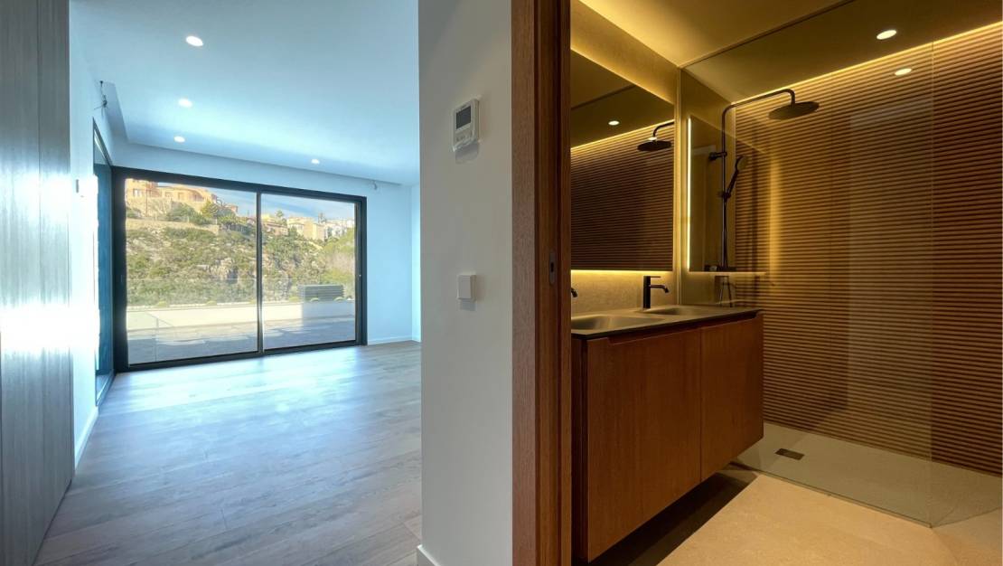 Панорамный вид на море, долину и скалу Ифач; бассейн-инфинити с видом на море; средиземноморский сад, не требующий особого ухода; подогрев пола и встроенное кондиционирование воздуха; большие окна для максимального обзора; многофункциональный первый этаж.