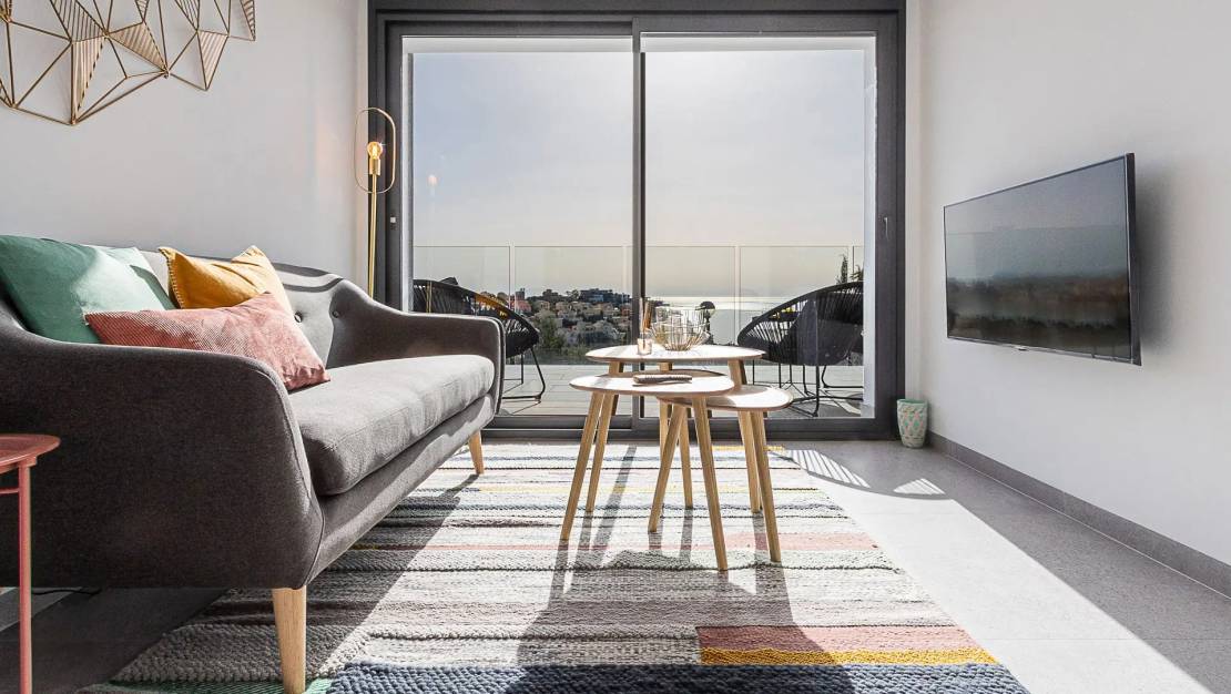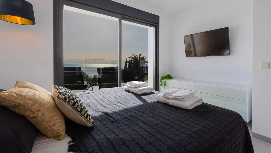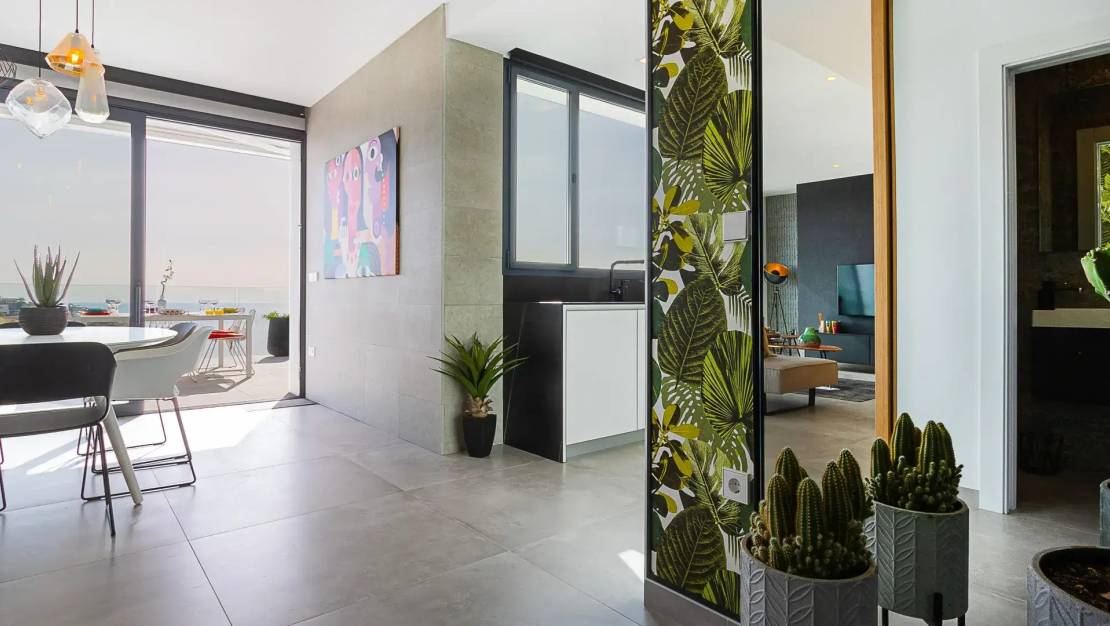 На первом этаже, куда можно подняться по внешней лестнице, находится гостиная открытой планировки и еще одна кухня, а также две спальни, каждая со своей ванной комнатой. Главная терраса – настоящий оазис с бассейном, окруженным шезлонгами, и зоной отдыха. Также есть нижняя терраса с обеденной зоной на открытом воздухе под навесом с видом на море.
