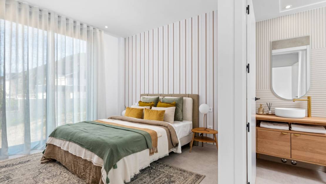 Интерьер домов спроектирован для максимального комфорта и функциональности. С керамическими полами, придающими элегантный и современный вид, недвижимость предлагает три спальни и три ванные комнаты, обеспечивая просторное и удобное пространство для всей семьи. Электрические жалюзи и встроенная техника добавляют дополнительный уровень удобства и эффективности. Встроенные шкафы предлагают практичные и эстетичные решения для хранения, оптимизируя доступное пространство.