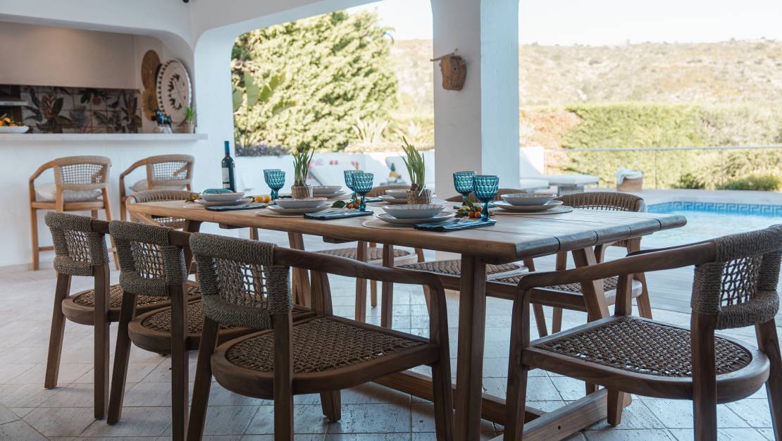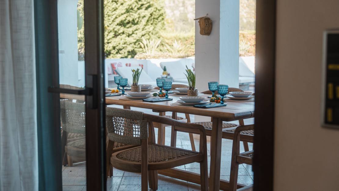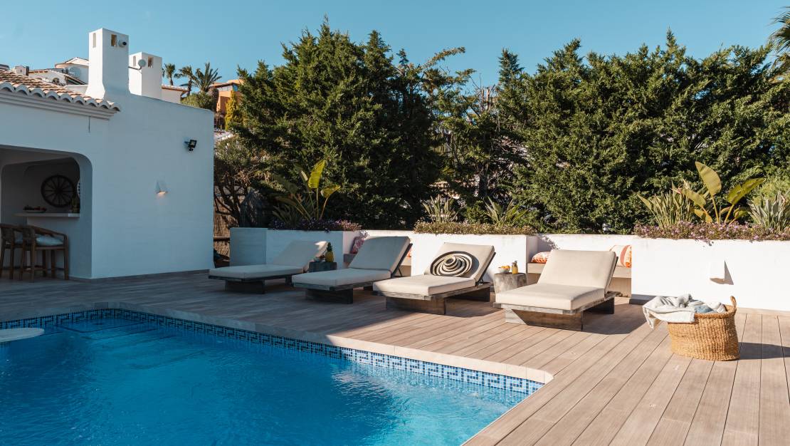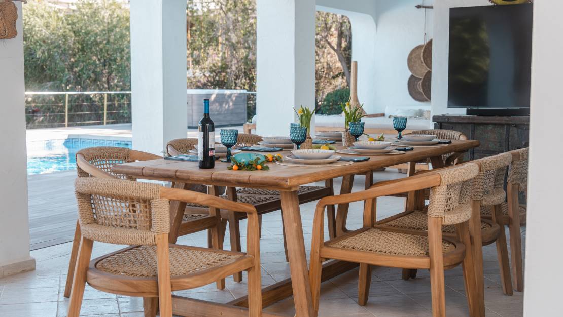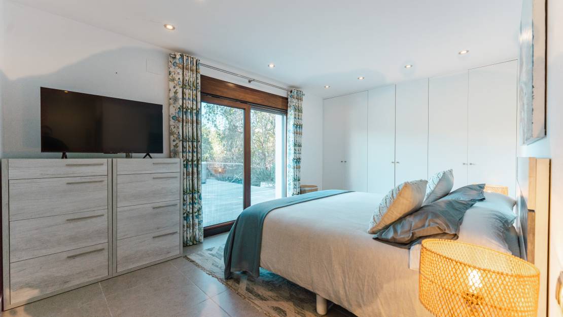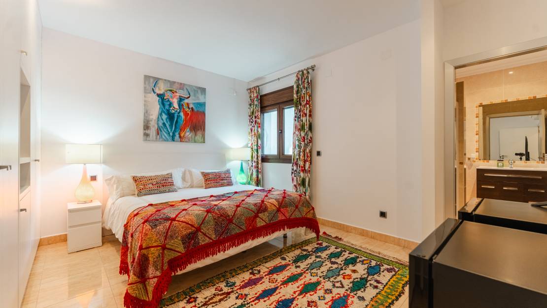 Эта красивая и просторная вилла в ибисенском стиле с оригинальным и продуманным дизайном построена по самым высоким стандартам качества и недавно отремонтирована. Она расположена в одном из самых эксклюзивных районов Морайры, Ла-Арнелла, где вы найдете тишину и покой, наслаждаясь прекрасным видом на море. Всего в 5 минутах езды находится оживленный поселок Морайра, его прекрасные пляжи и рестораны, такие как «Эль Портет». Открыв красивую деревянную входную дверь в традиционном стиле, вы попадаете в просторный холл с отдельным гостевым туалетом, ведущий в светлую и просторную гостиную и столовую. Благодаря большим окнам открывается широкий вид на море с террасы. В прохладные зимние вечера уютное тепло камина будет неоценимо. Кухня открытой планировки с островом недавно отремонтирована и оборудована новой бытовой техникой. Рядом с кухней находится подсобное помещение, используемое как прачечная, из которого также есть выход на террасу. На этом этаже расположены три большие спальни, две ванные комнаты и гостевой туалет. Лестница в прихожей ведет на верхний этаж, где находится просторная главная спальня с роскошной ванной комнатой, оборудованной джакузи и большой душевой кабиной. Из этой комнаты открывается прекрасный вид на море, и есть небольшая терраса. Вторая спальня имеет очень просторную террасу с открытым видом на море и горы. Помимо третьей спальни, на этом этаже также расположены две большие ванные комнаты с душем, туалетом и раковиной. Большое раздвижное окно из столовой на первом этаже ведет на прекрасную веранду. Слева от веранды находится кухня под открытым небом с барбекю и баром, отдельный гостевой туалет с душем и красивый декоративный внутренний дворик. Рядом с бассейном размером 10 x 5 м достаточно места для шезлонгов. Внешняя лестница ведет с этой террасы на нижний этаж, где находится двойной гараж. Автоматические ворота ведут к красивой подъездной дорожке с круговым движением. Благодаря двойному участку имеется много места для частной парковки, а также красиво благоустроенный сад с пальмами и цветами.