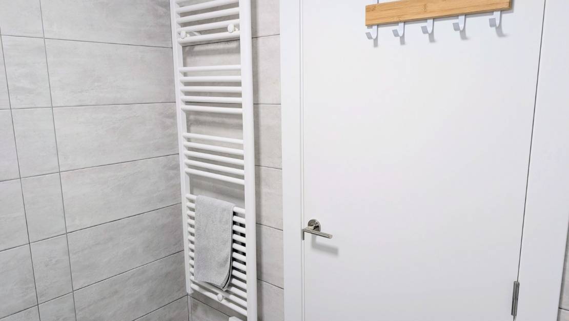 Две просторные спальни с двуспальными кроватями, в каждой из которых установлены компактные шкафы-купе. Между спальнями расположена современная ванная комната с современной душевой кабиной, раковиной, местом для хранения вещей, водонагревателем и полотенцесушителем.